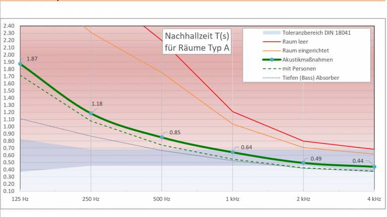All values are always calculated. No information on recommended Tolerenazabhängigen T (s) reverberation times according to DIN 18041 is given for Group B rooms.