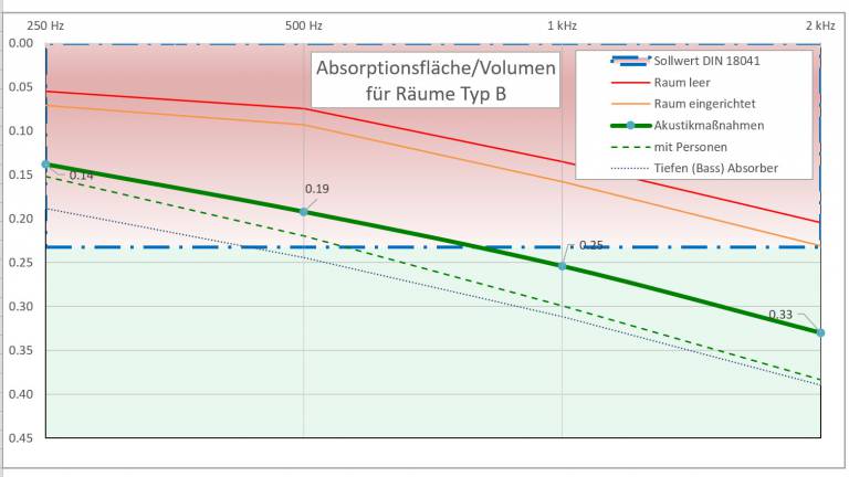 In the next section you enter the acoustic measures to be proposed, then the persons and finally you can add deep absorbers. All curves are shown clearly in the following 2 graphs.