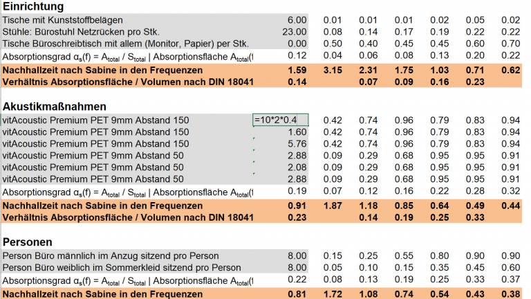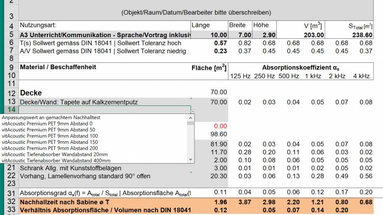 Acoustic calculator According to DIN 18041-online calculation of sound absorption in offices, conference rooms and classrooms