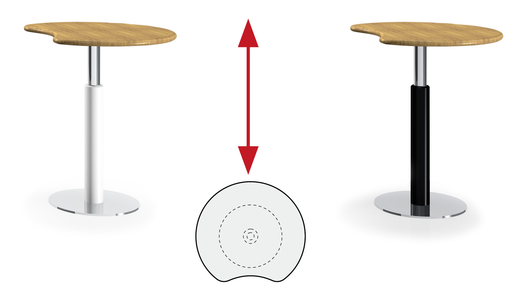 for meetings in a sitting position and quick meetings in the standing. With the stand-up height adjustable VARITABLE meeting tables, you are always flexible. Optionally you may use the height-adjustable VARITABLE as standing workplace for E.g. computer work, next to your desk.