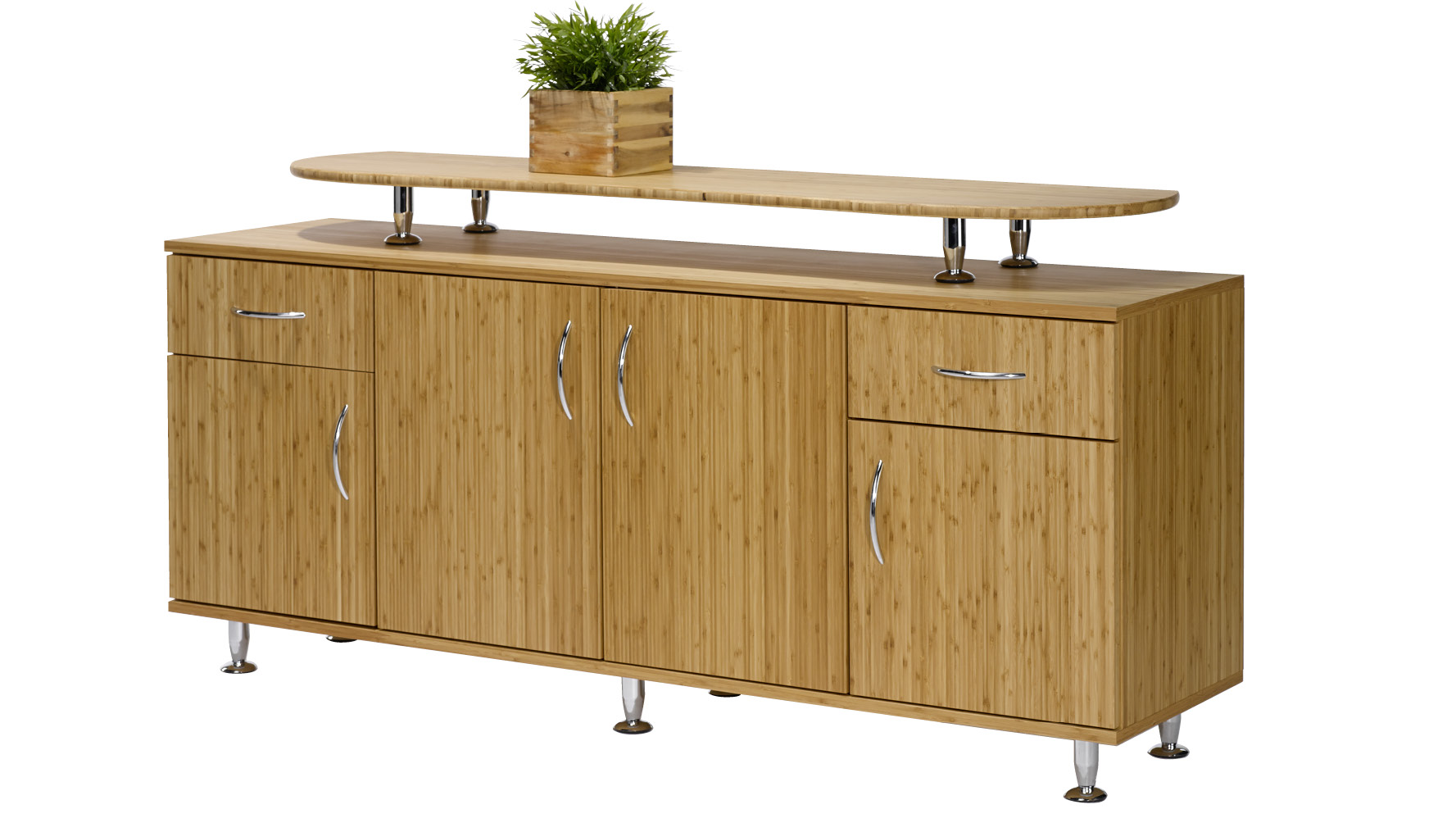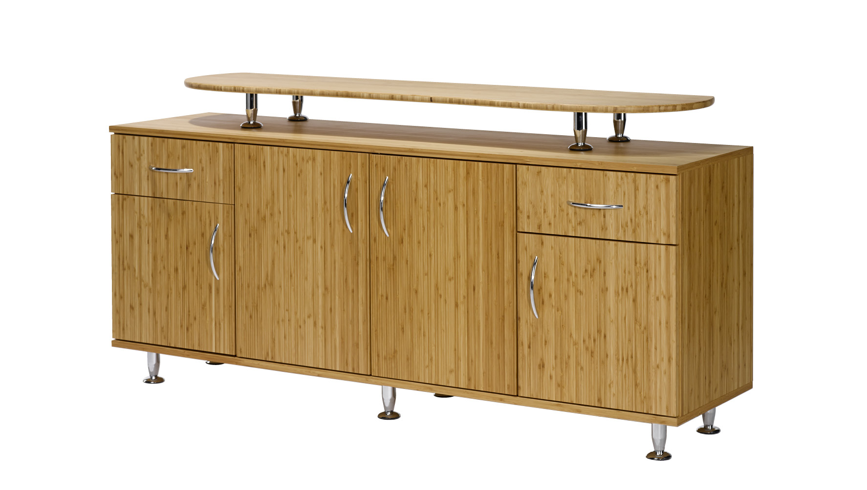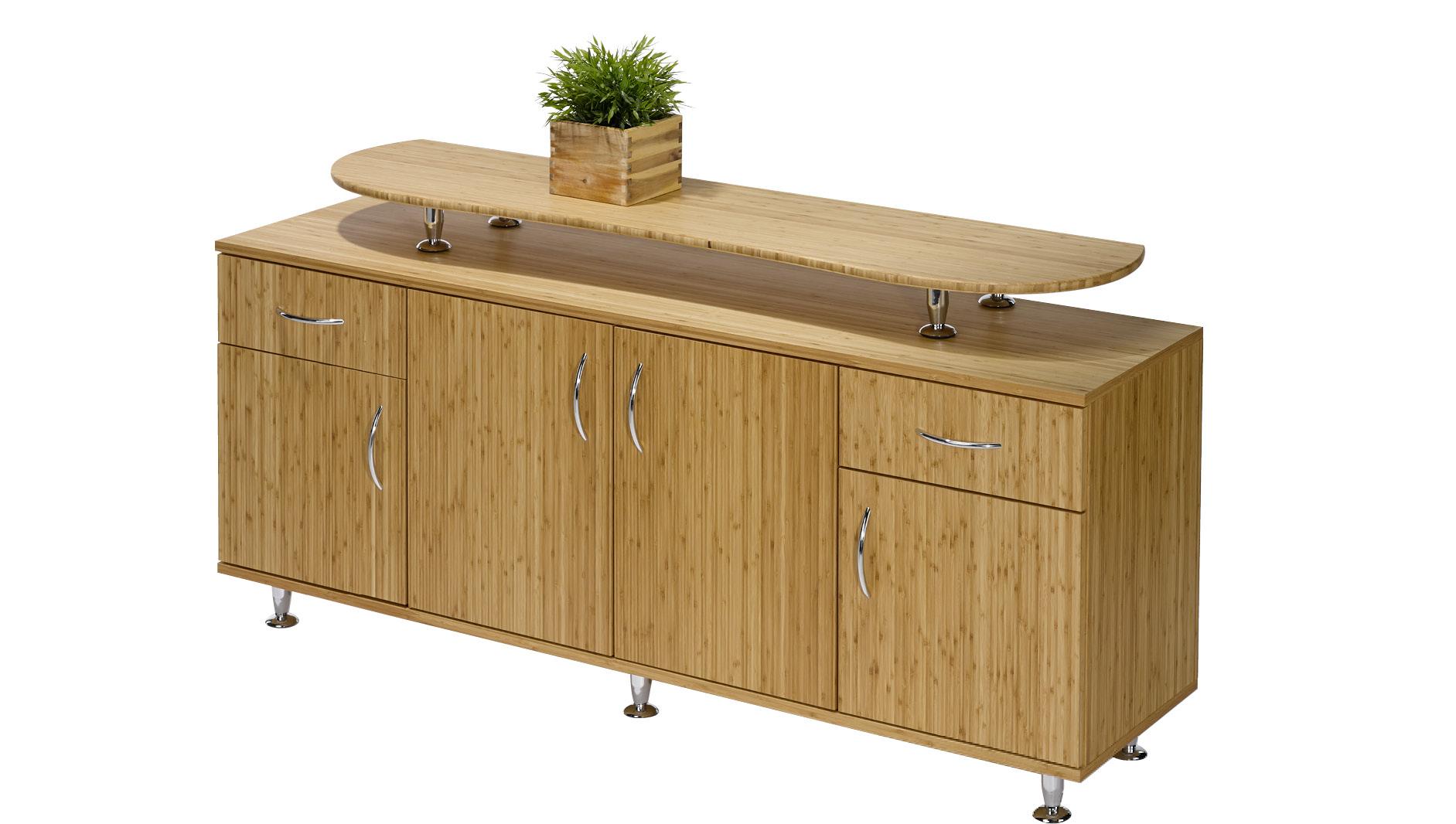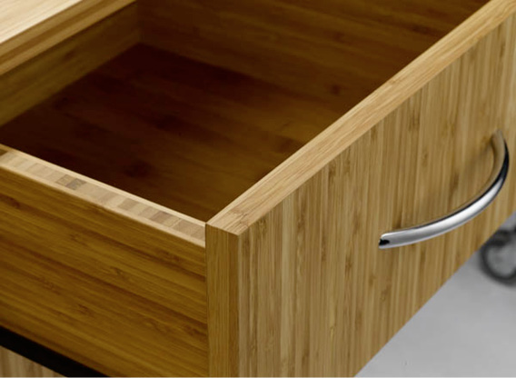 This quality furniture is for those who take care of quality details. Everything is made out of solid wood bamboo. Also the drawers. It's lean minimalist Bauhau design without anything fancy, makes it a long lasting design piece in your home and office.