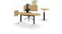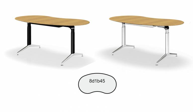 Rounding the table tops allows a completely free placement of desks that can adapt even to difficult spatial conditions. It leads to: gaining more space efficiency, stress reduction through optimized privacy (Feng Shui), flexibility in the arrangement of the tables and creation of working groups, manifold diversity in planning and reserve for future workplace extensions. A sustainable furniture concept, optimized for restructuring, conversions and relocations in other rooms. Another positive design feature with regard to aesthetic interior design is the different optical effects (subtlety): Same size round shapes are perceived less voluminous than angular ones.