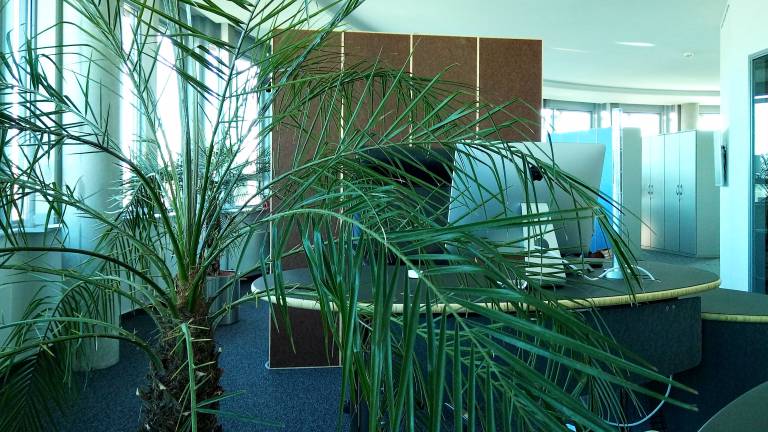 Schon lange mit uns auf dem Weg und immer wieder in sehr angenehmer Zusammenarbeit sind wir mit unserem Kunden Kunz-Schulze Immobilien. Sicher liegt das auch daran, dass Teile seiner Firmenphilosophie wie „Der Mensch steht bei uns im Vordergrund“ oder "wir leben unseren Beruf mit ganzem Herzen“ den unseren so ähnlich sind. Mit diesem Hintergrund machten wir uns an die Arbeit und entwarfen mit dem kreativen Team von Kunz Schulze Immobilien zusammen, ein sehr edles, modernes und lebendiges Büro, welches bis hin zu den eingesetzten Vital-Office (Möbel) Produkten das Firmenbild spürbar macht. "Die Qualität unserer Arbeitsumgebung bestimmt die Qualität unserer Arbeit" - Unsere ergonomischen Tische wurden aus einer Kombination von nachhaltigem massivem Bambus und Linoleum gefertigt, Die benötigten Aktenschränke erhielten eine schlichte Dekorfläche und wurden einseitig mit einer Bambusrahmen-/Akustik 3d-frames Konstruktion beplankt, um gleichzeitig ein angenehm raumakustisches Klima zu schaffen. Als zusätzliche schallabsorbierende Elemente wurden unsere Akustikmatten in Rollcontainern sowie Sichtschutzblenden der Schreibtische verarbeitet. Große Pflanztröge sorgen für ein gesundes Raumklima.