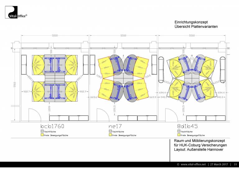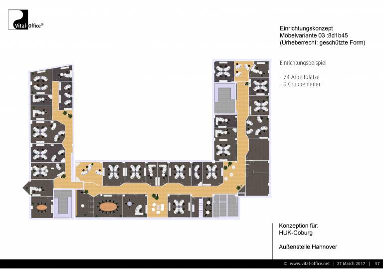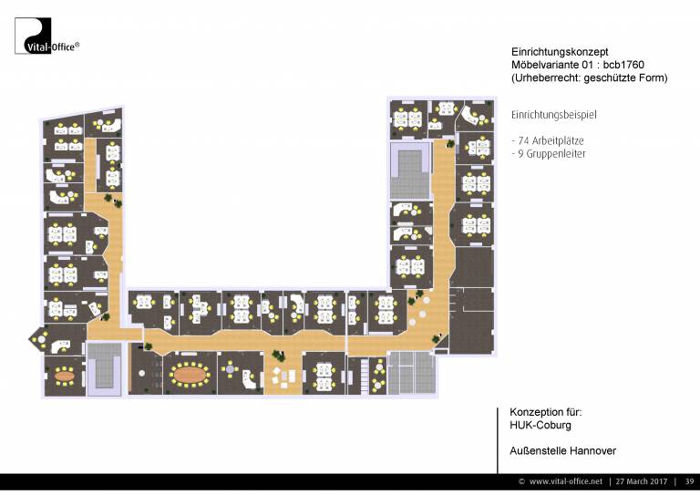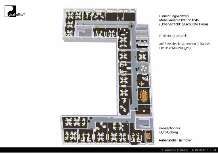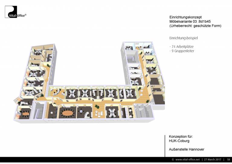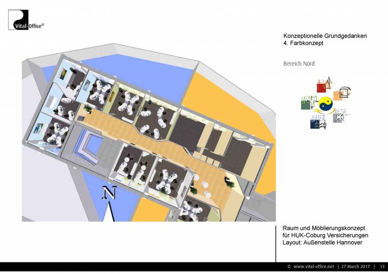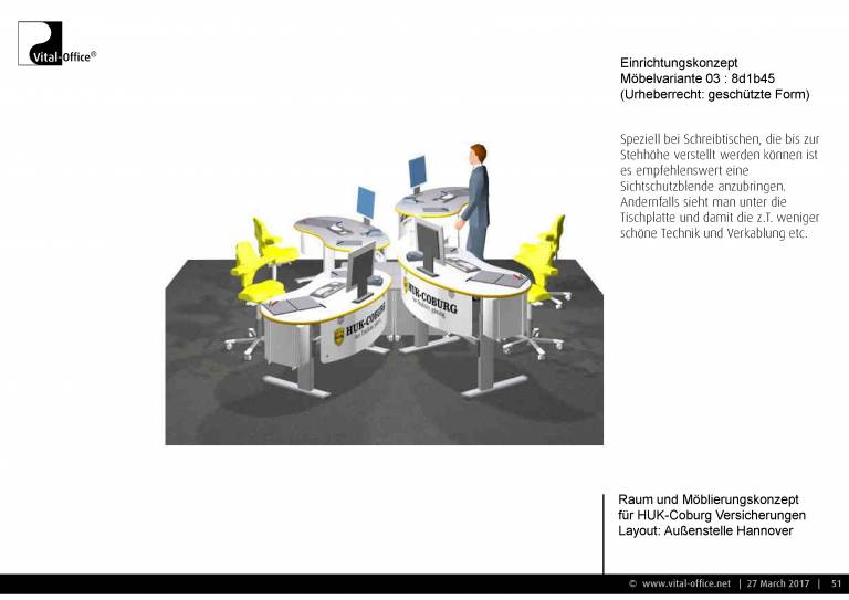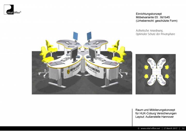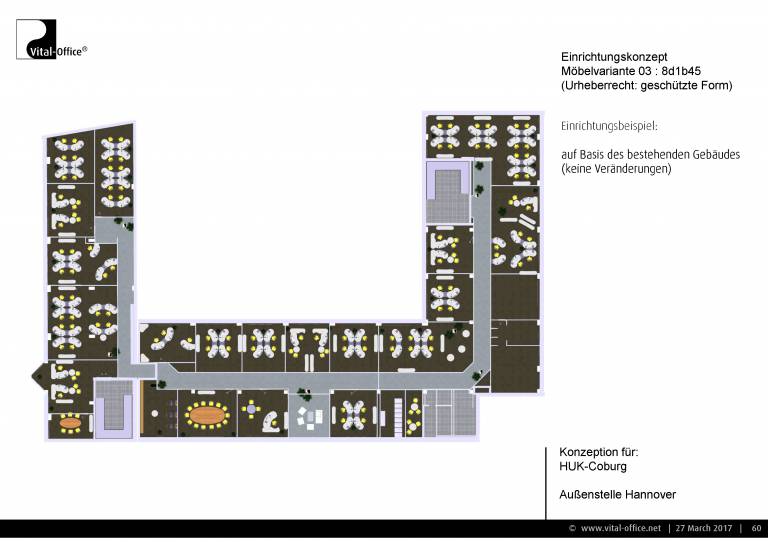 Beispielsweise sollte kein Mitarbeiter im „Durchzug“ sitzen, d.h., dass zwischen Tür und Mitarbeiter eine zumindest angedeutete Abgrenzung sein soll, die den Intimbereich schützt und damit auch zu mehr Konzentrationsfähigkeit ohne Störungen führt.
