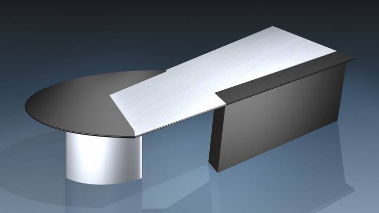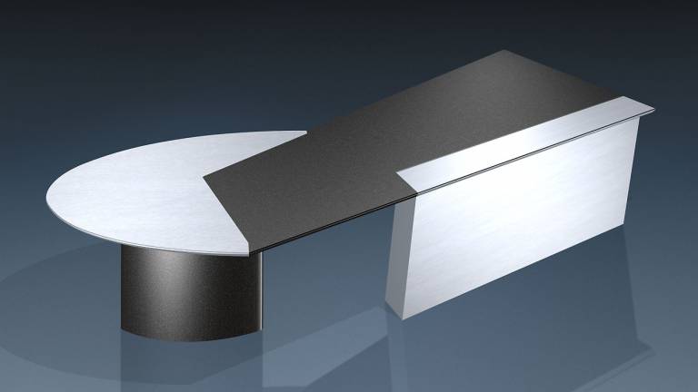 Tops in matte Linoleum desktop, combined with Laminate aluminum silver.
