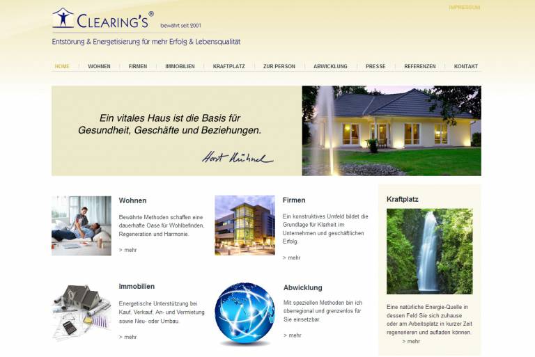- 3. Nochmals wurde ich bei dem Versuch, ein ideales Haus zu verkaufen, mit dem Phänomen konfrontiert, dass es sich nicht verkaufen ließ. Trotz sehr vieler Interessenten kam es auch nach 1 1/2 Jahren nicht zum Abschluß. So gab ich es der Immo-Abteilung einer örtlichen Bank, die in 3 Monaten sage und schreibe 56!!! Interessenten hatten, doch keiner kaufte... unglaublich? Aber wahr!Fasziniert von der Materie und aus Mangel an Lösungen begann ich mit umfangreichen, internationalen Ausbildungen in diversen Fachgebieten.