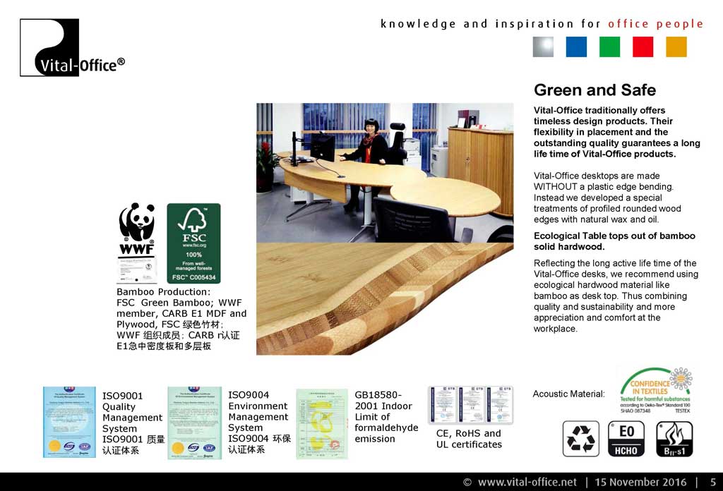 Introduction of Vital-Office: Vital-Office introduction, Corporate principles, History, Trusted Quality, Green and Safe, German or Chinese production, Portfolio, Business divisions, products and services