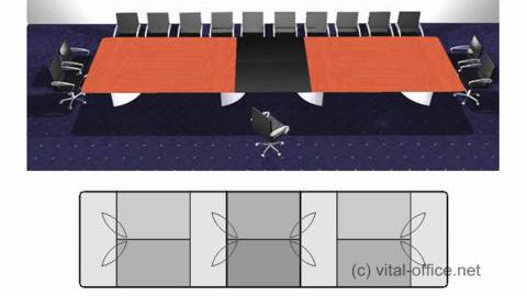 Extendable meeting table Type: CC7 e30a/zt13 -ctl Dimension: 3 x 1.24m + inlay 1.24m Star like molded bases