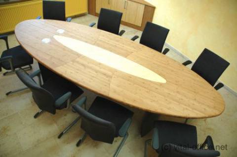 Conference table elliptic or boat shaped, dimensions: 260x124cm.