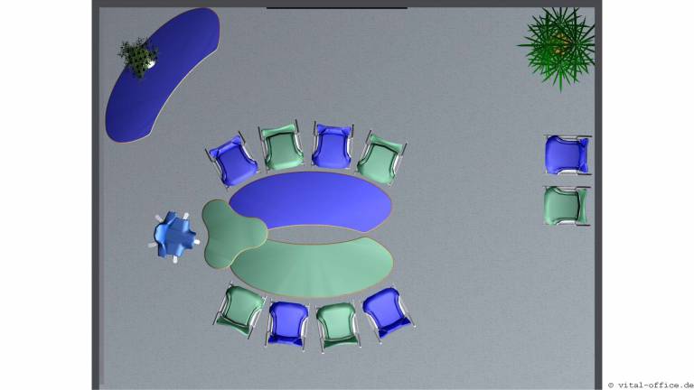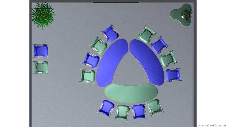 Die Tischform flexiconference ellipse ist eine elegante Variante speziell für kleinere Räume. Durch die spezielle Form lassen sich die Tische in jedem Winkel zueinander positionieren.