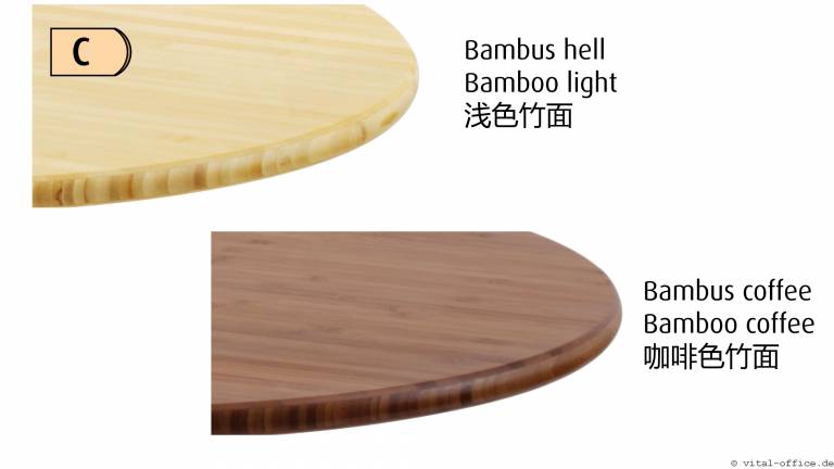 - Tischplatten aus 25mm Bambus Massivholz mit C-Profilkante geölt.