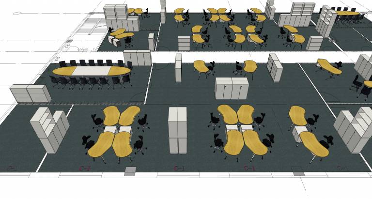 - 4 persons round groups: round share space enhances the team communication and shorten the approaching route. Round circle area are fengshui and energy accumulated, shared by teams
