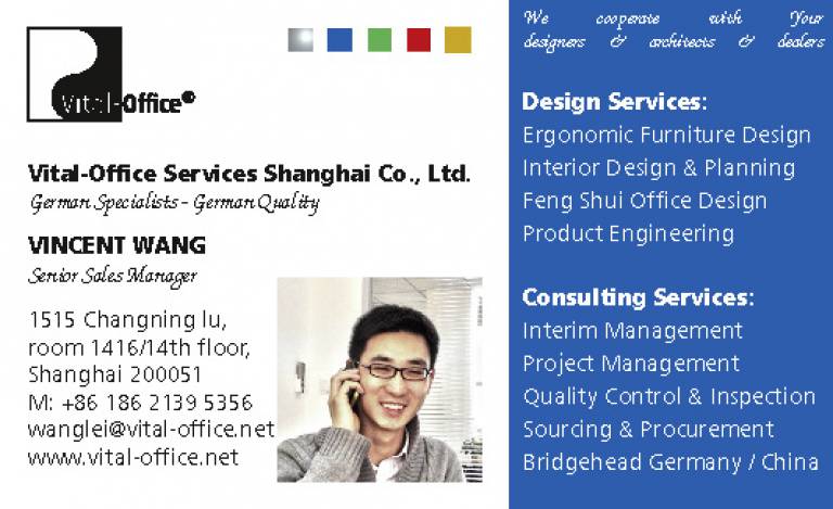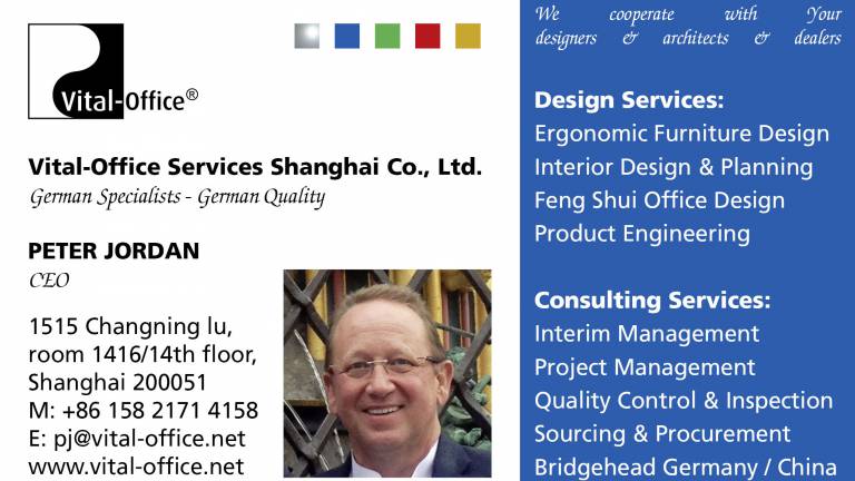 Vital-Office team keep striving to enhance workplace conditions in favor of employees as well as the employers. Keeping in mind a win/win benefit between health, wellbeing and productivity. As you know, Vital-Office is a small organization, but we make a difference. Knowledge and (German) reliability as well as openness to any kind of cooperation, with designers, architects, manufacturers and customers are our attributes. With much emphasize our team organized in cooperation with Mittelstand International and Dongua University the following informational forum. And we all like to invite you: