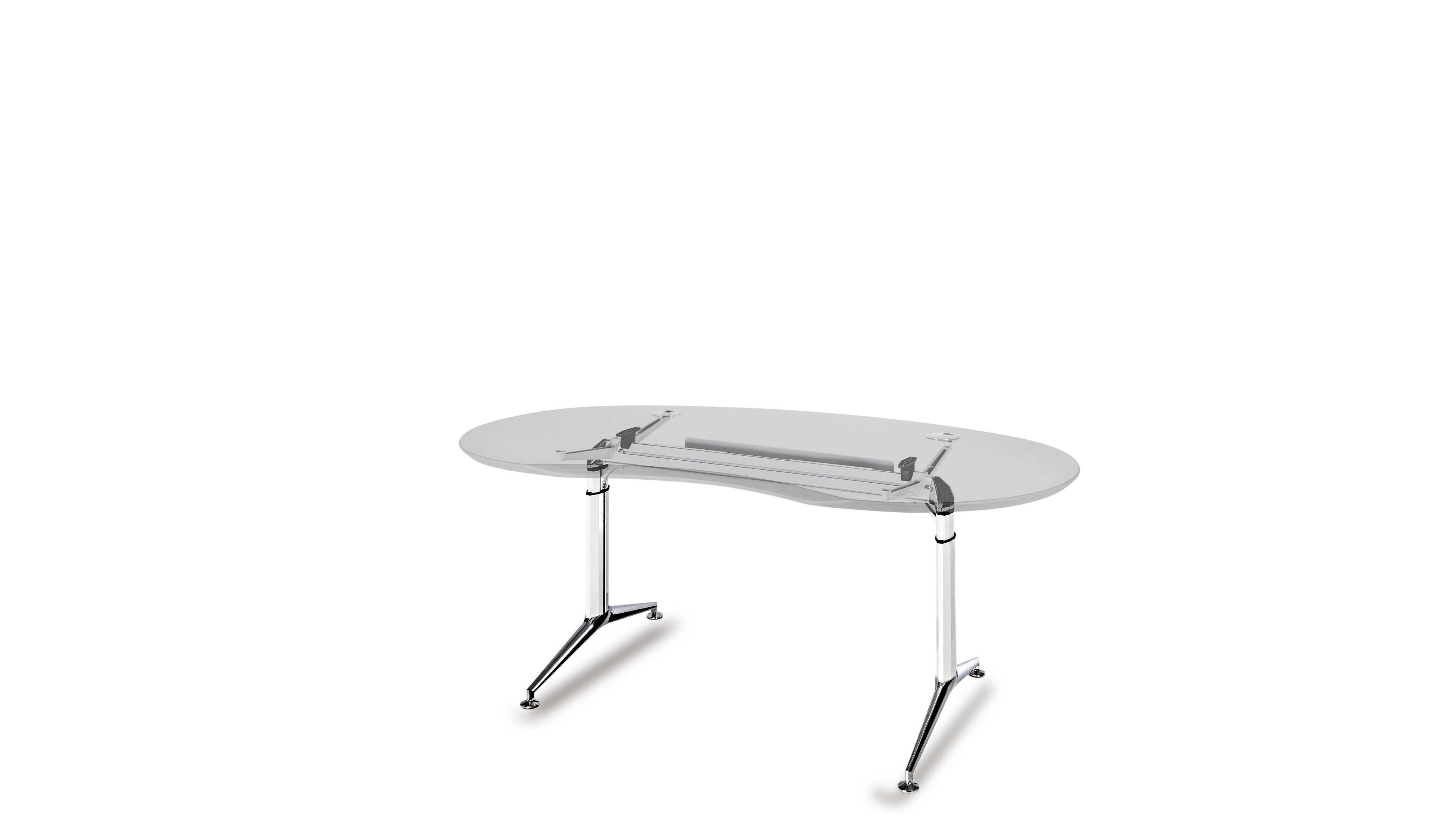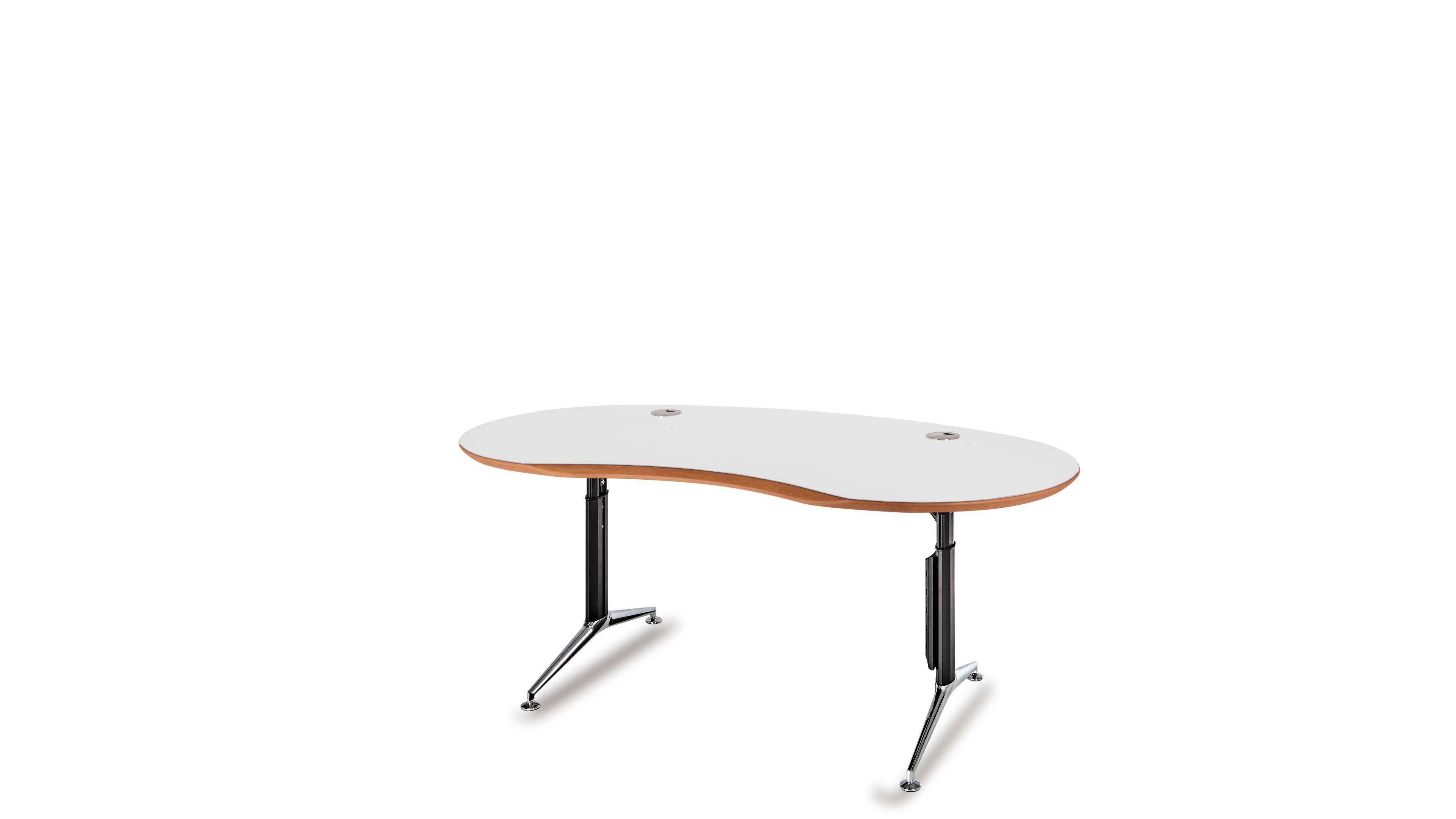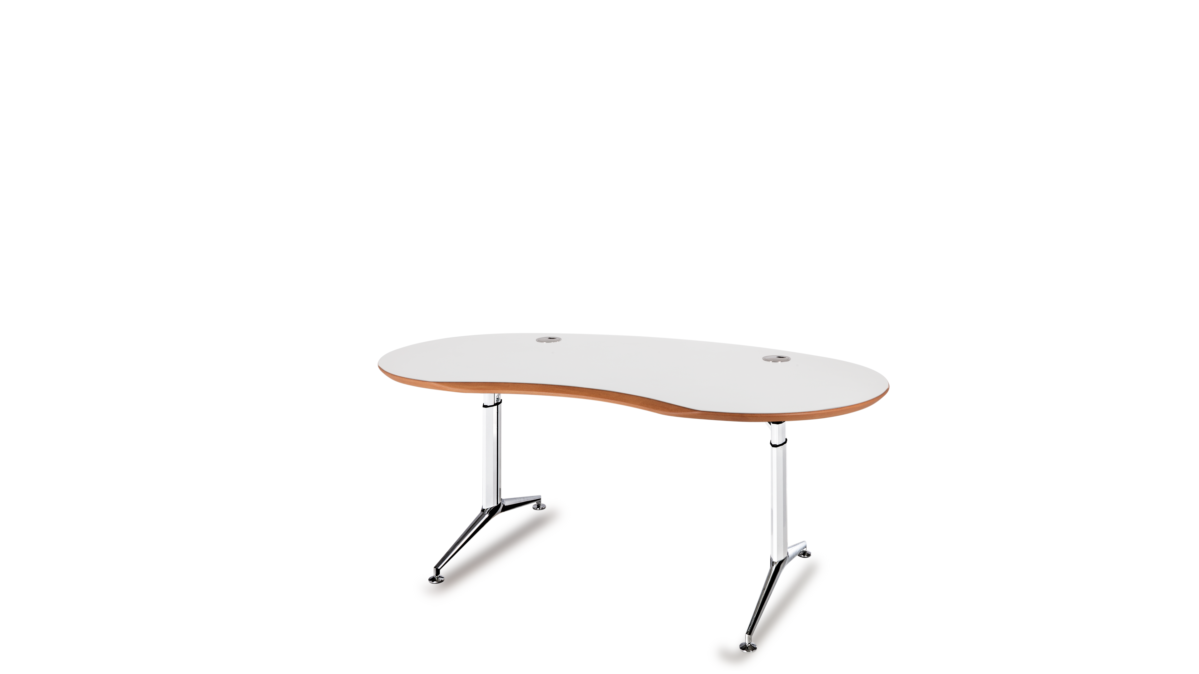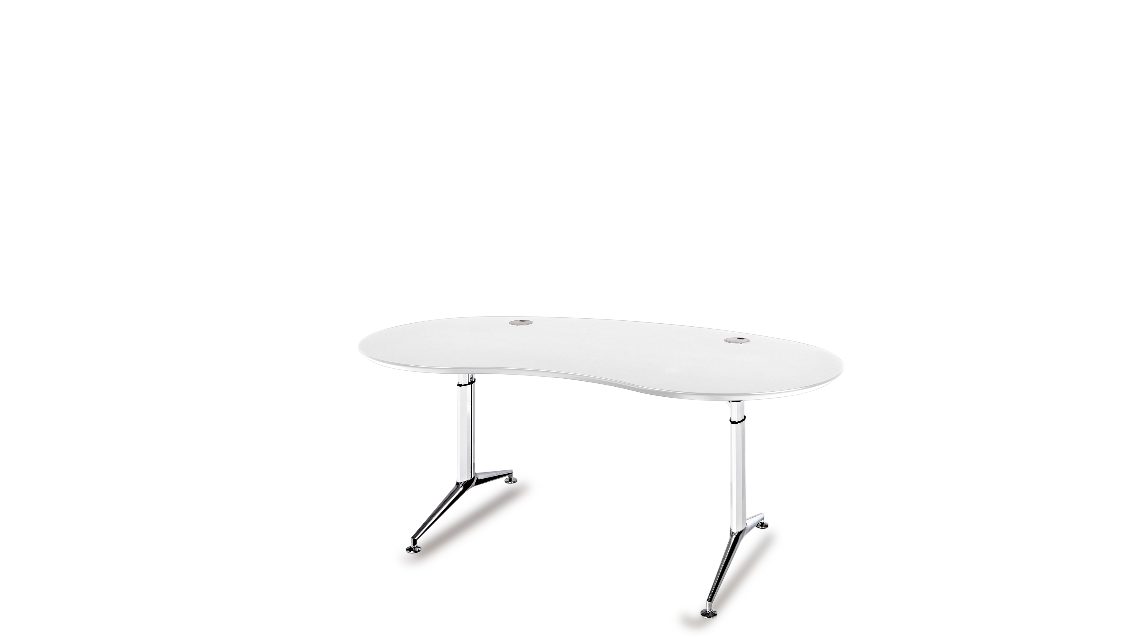 Das Abrunden der Tischplatten ermöglicht eine völlig freie Platzierung der Arbeitsplätze, die sich auch schwierigen räumlichen Gegebenheiten anpasst. Es führt zu: Gewinn von Flächeneffizienz, Stressreduzierung durch optimierte Privatsphäre, Große Flexibilität in der Anordnung der Tische und Gestaltung von Arbeitsgruppen, Enorme Planungsvielfalt und Reserve für spätere Arbeitsplatzerweiterungen. Ein langlebiges Konzept, optimiert für Umstrukturierungen, Umbauten und Umzüge in andere Räume. Ein weiteres positives Gestaltungsmerkmal hinsichtlich ästhetischer Raumgestaltung ist die unterschiedlich optische Wirkung (Täuschung):Bei gleicher Größe werden runde Formen kleiner wahrgenommen als Eckige.