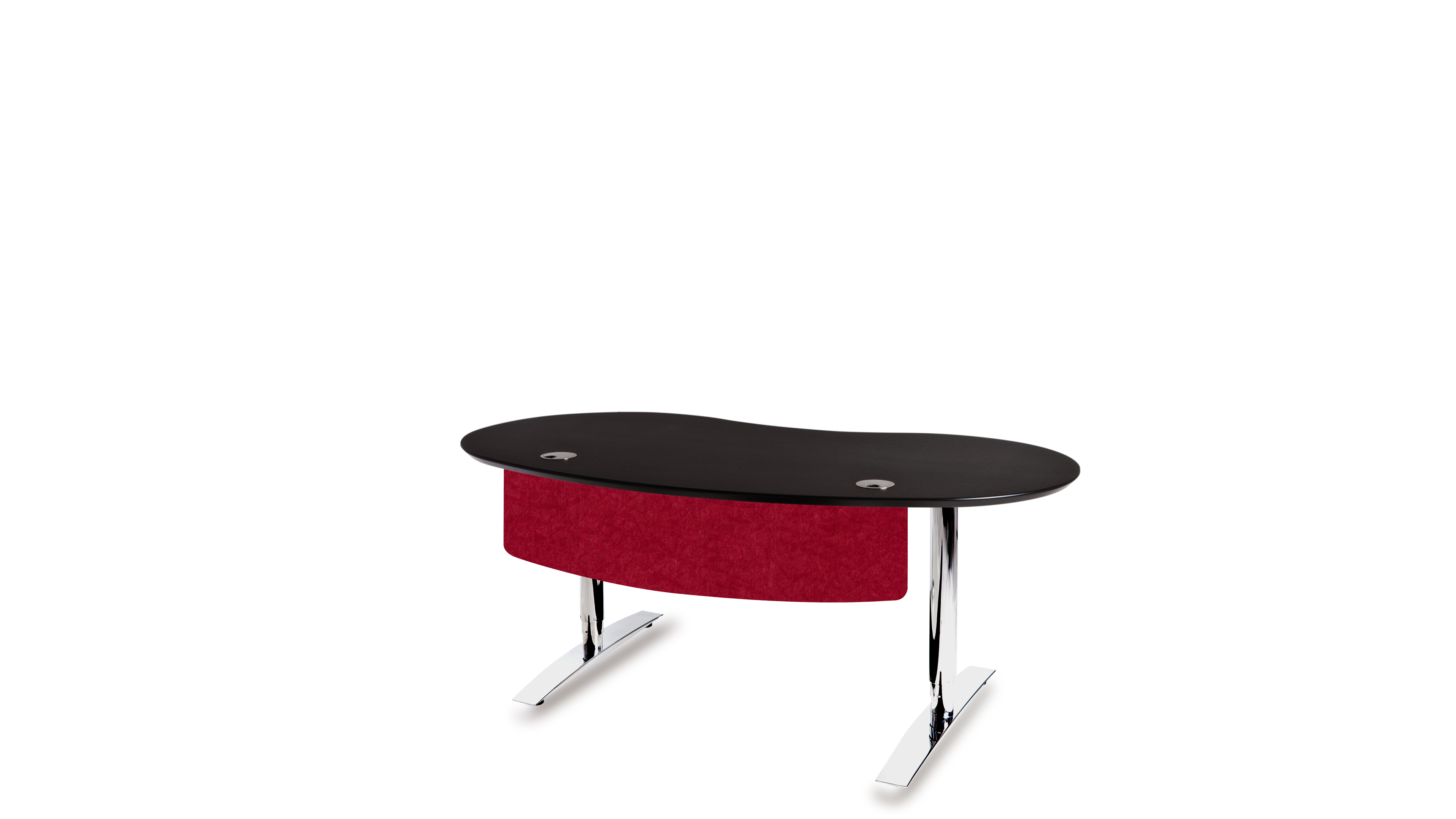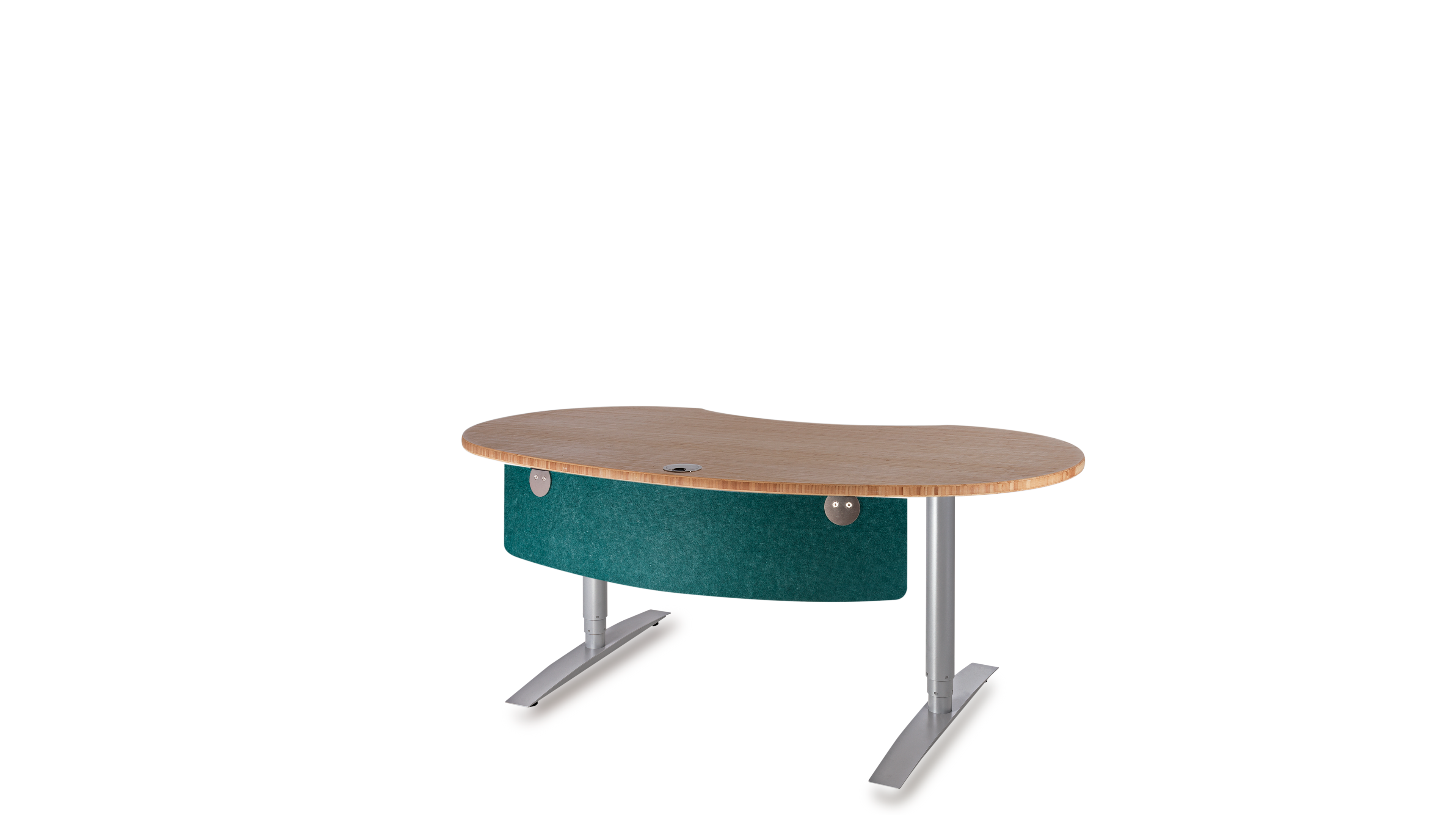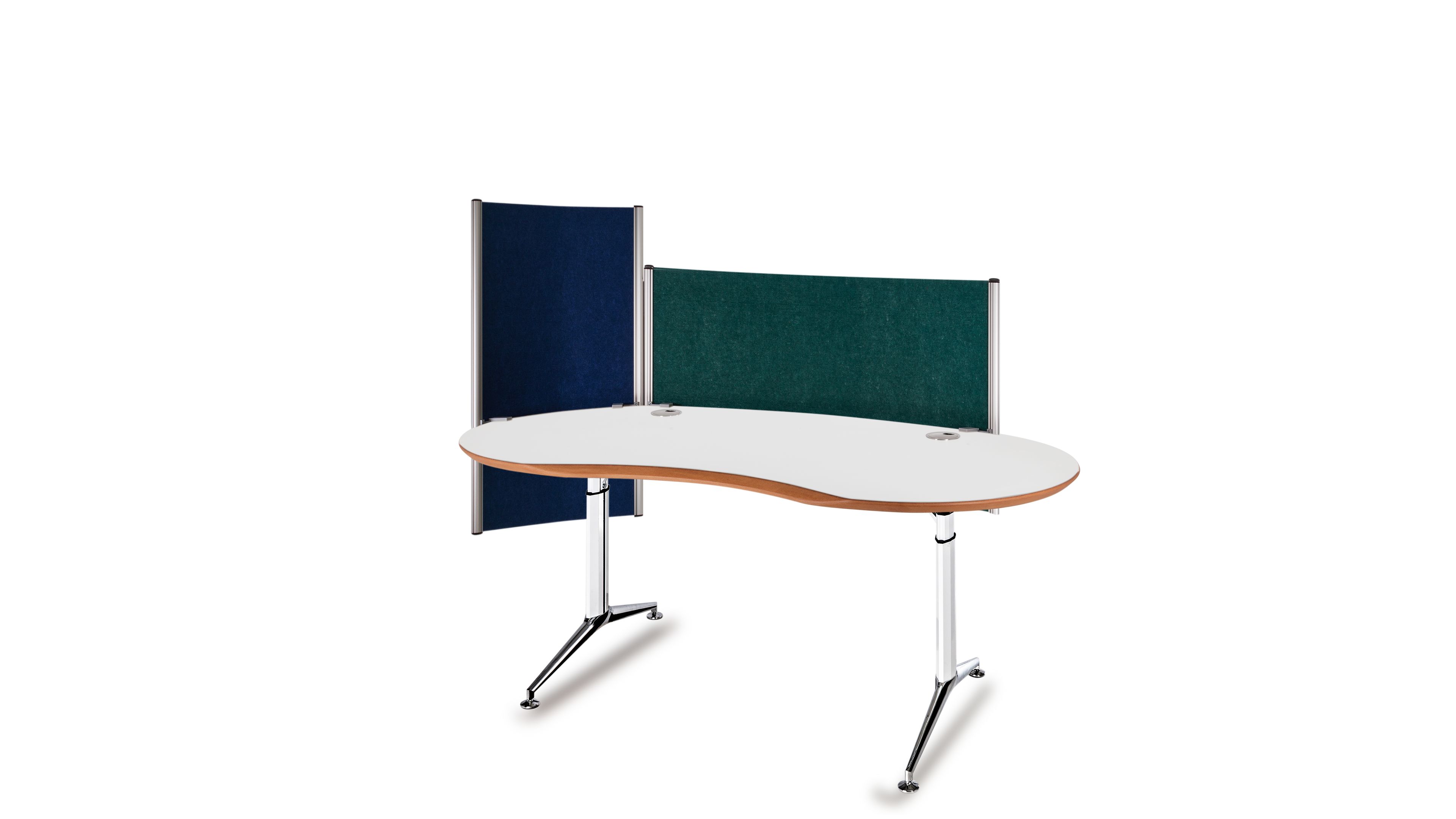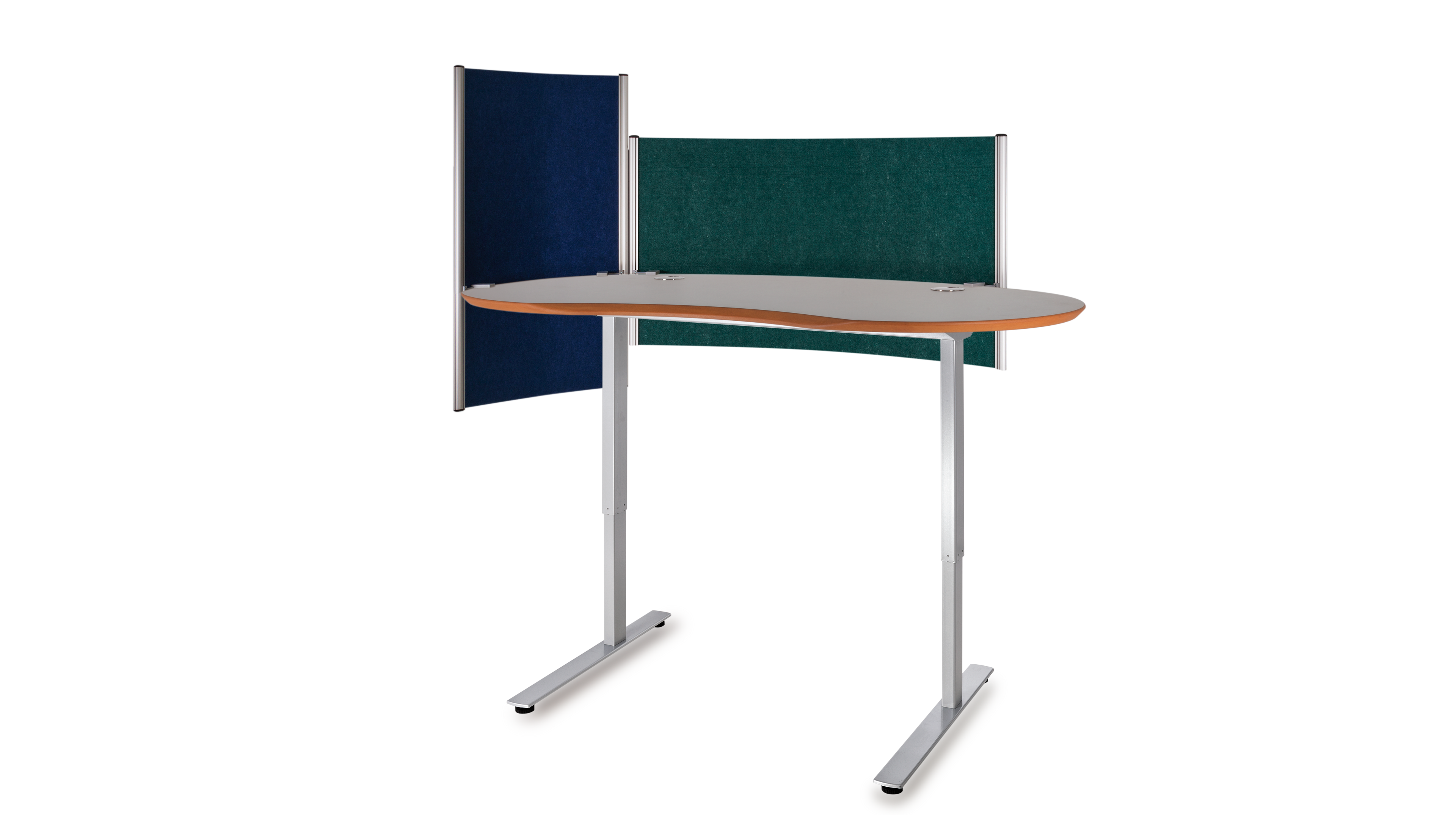 Das Büro ist ein geschäftiger Ort, der eine harmonische Atmosphäre benötigt. Die optimale Gestaltung eines ergonomischen Arbeitsplatzes orientiert sich an den menschlichen Bedürfnissen. Das Gefühl der Sicherheit in Form eines geschützten Privatbereichs ist essentiell für stressfreies Arbeiten und Grundvoraussetzung für ungezwungene freie Kommunikation und Kollaboration. Die Rückendeckung, Abschirmung und Kommando (Übersichts-) Position kann durch Drehen der Tischplatte in beliebigem Winkel optimiert werden. Sie fügen sich soft in ihre Umgebung ein und führen somit zu mehr Bewegung und Kommunikation, während eckige Schreibtische scharf und abgrenzend das Gegenteil bewirken.