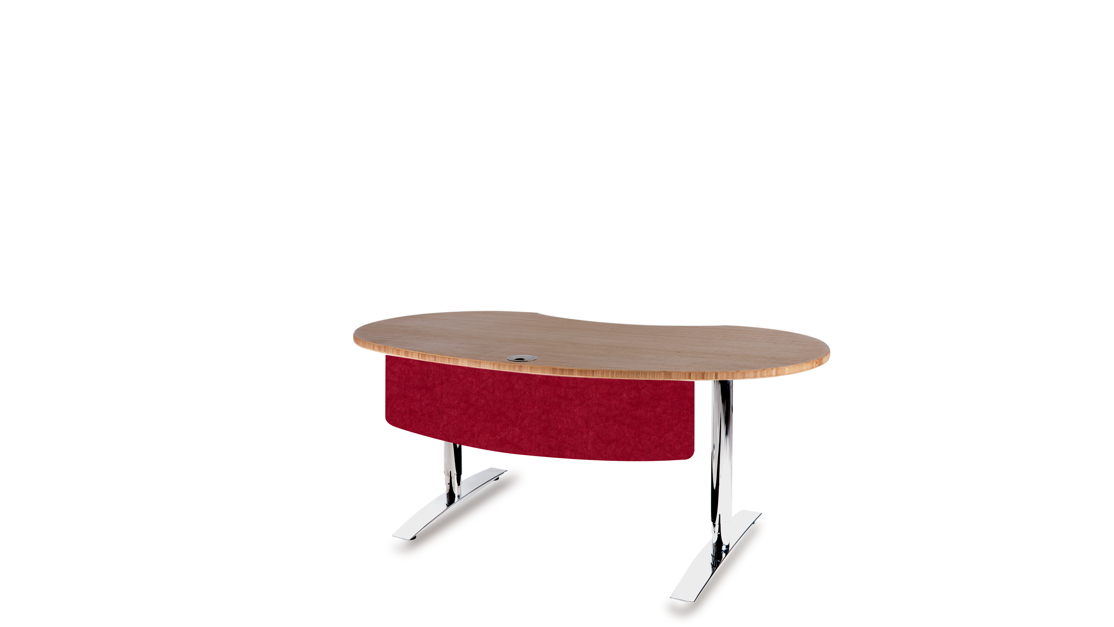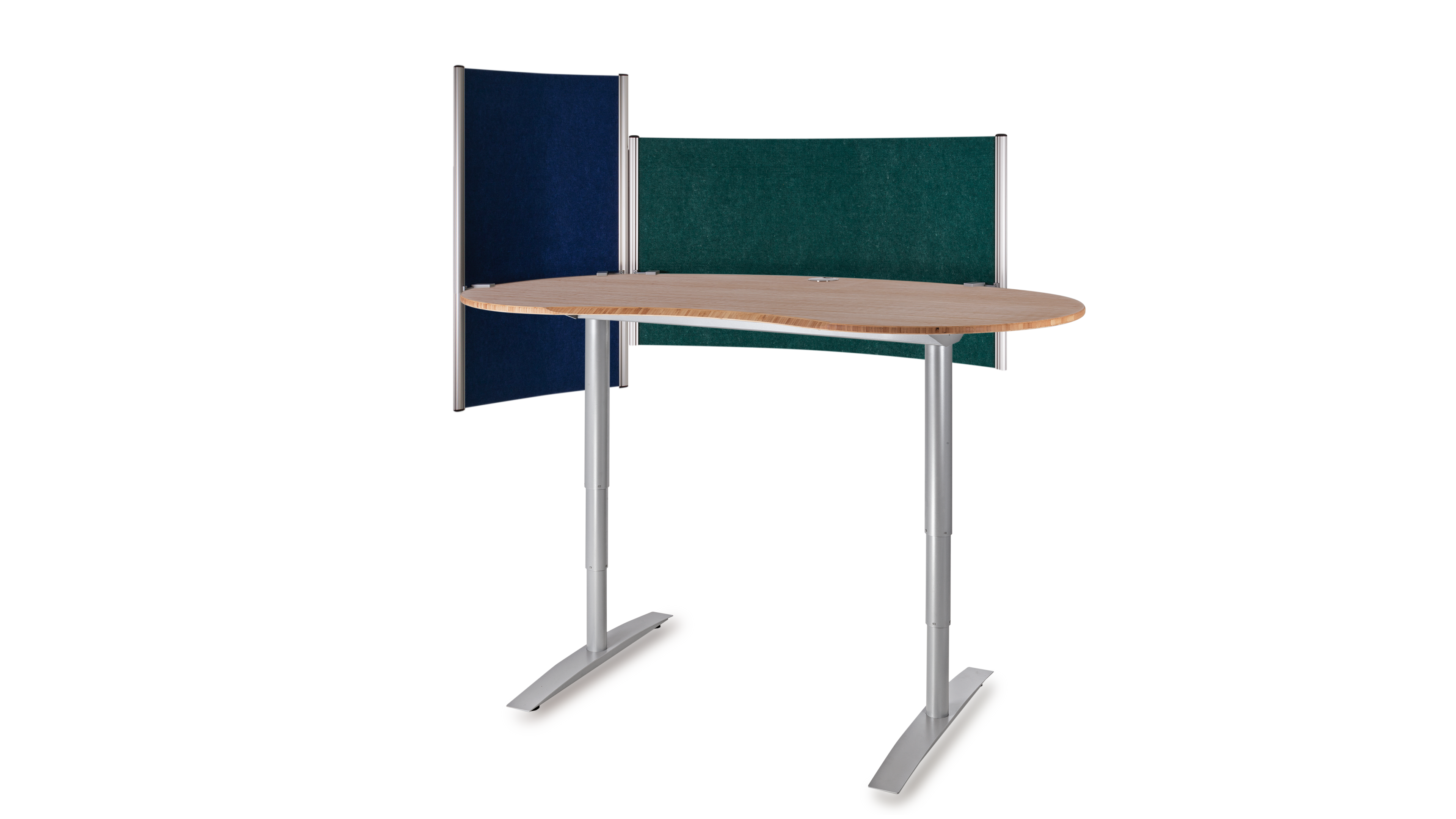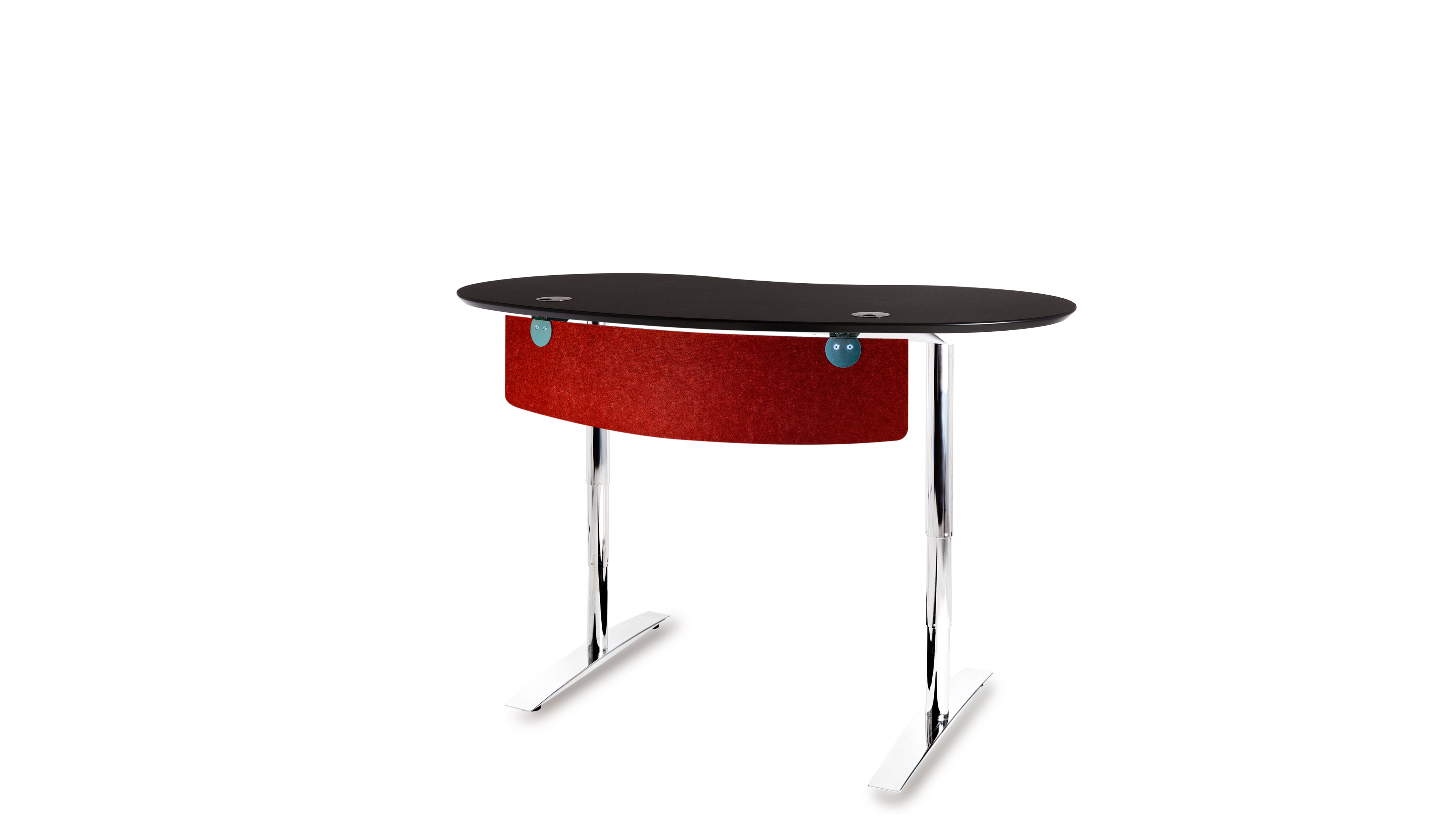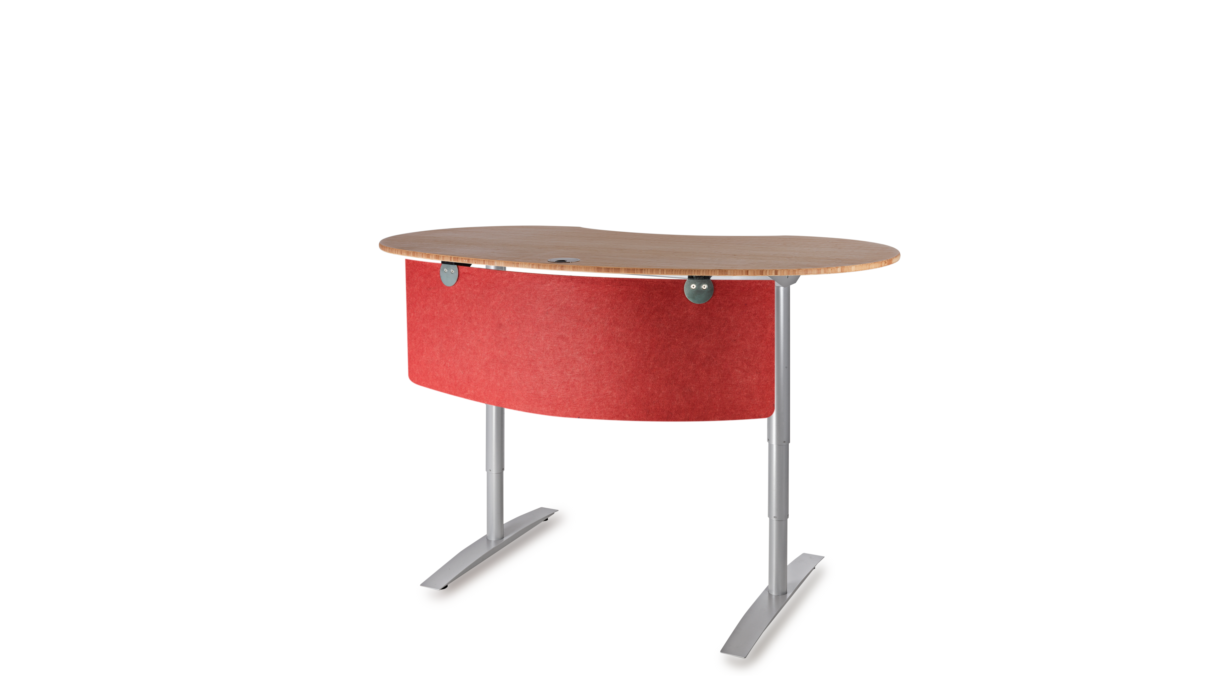 Das Büro ist ein geschäftiger Ort, der eine harmonische Atmosphäre benötigt. Die optimale Gestaltung eines ergonomischen Arbeitsplatzes orientiert sich an den menschlichen Bedürfnissen. Das Gefühl der Sicherheit in Form eines geschützten Privatbereichs ist essentiell für stressfreies Arbeiten und Grundvoraussetzung für ungezwungene freie Kommunikation und Kollaboration. Die Rückendeckung, Abschirmung und Kommando (Übersichts-) Position kann durch Drehen der Tischplatte in beliebigem Winkel optimiert werden. Sie fügen sich soft in ihre Umgebung ein und führen somit zu mehr Bewegung und Kommunikation, während eckige Schreibtische scharf und abgrenzend das Gegenteil bewirken.