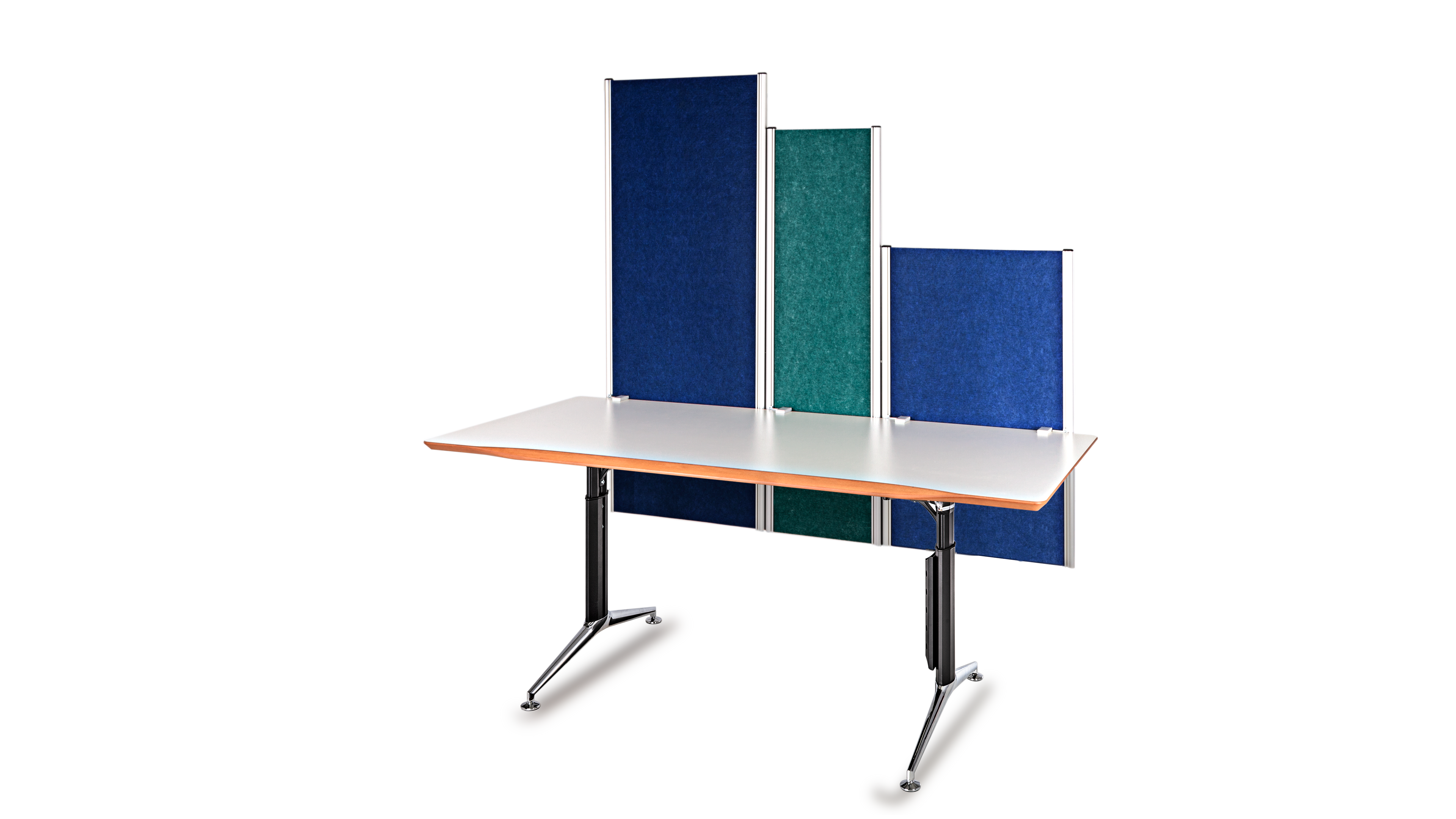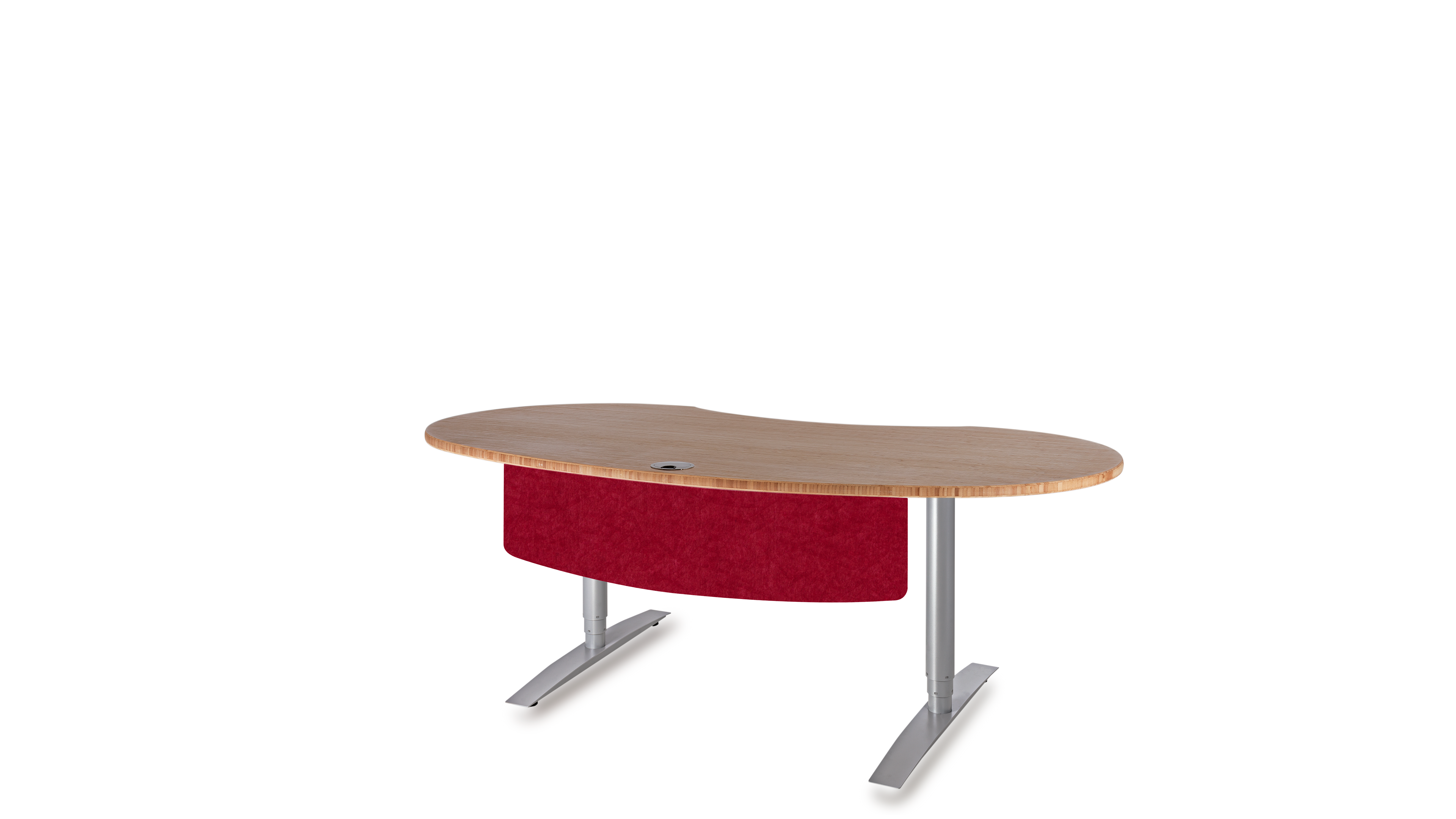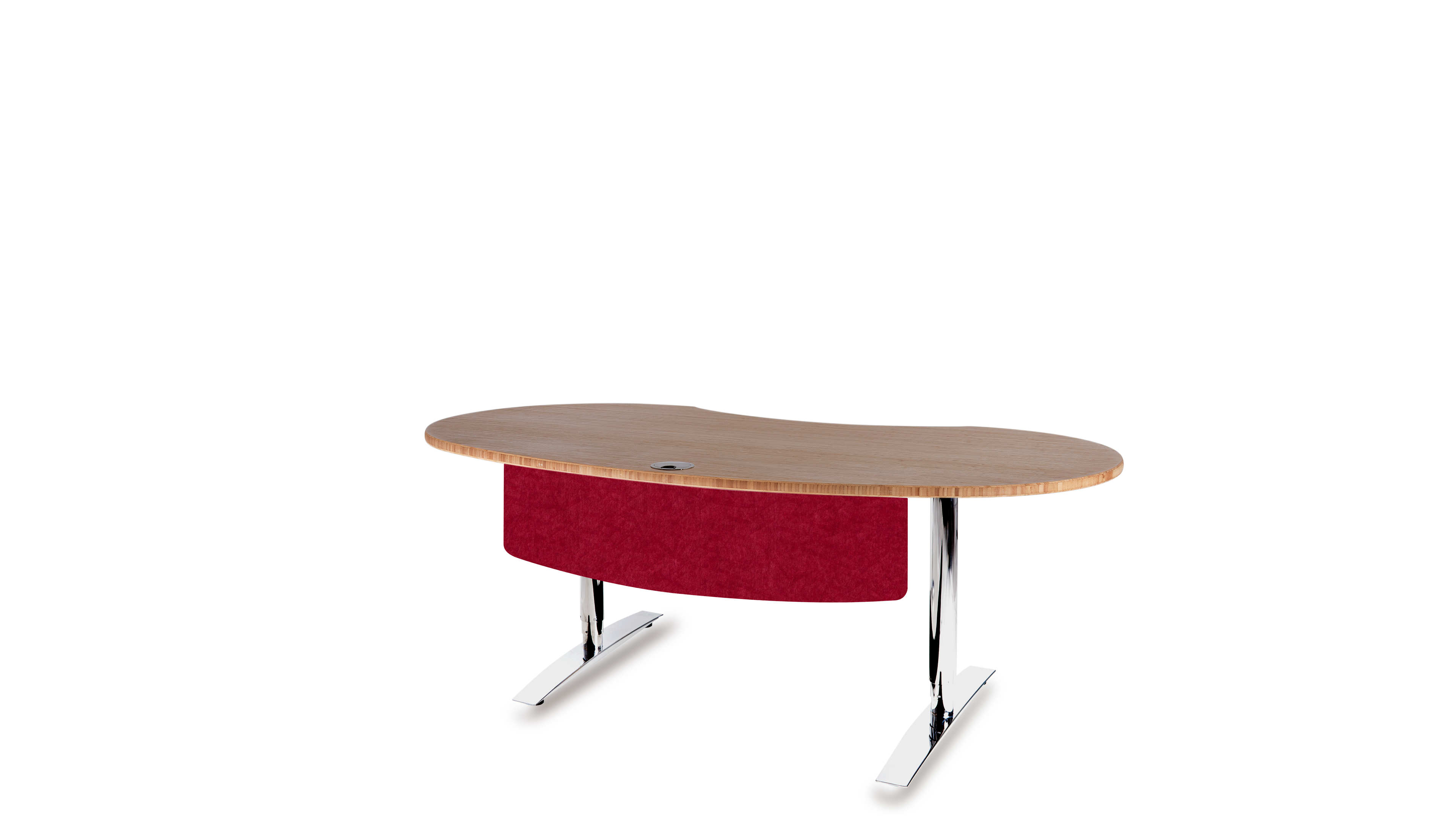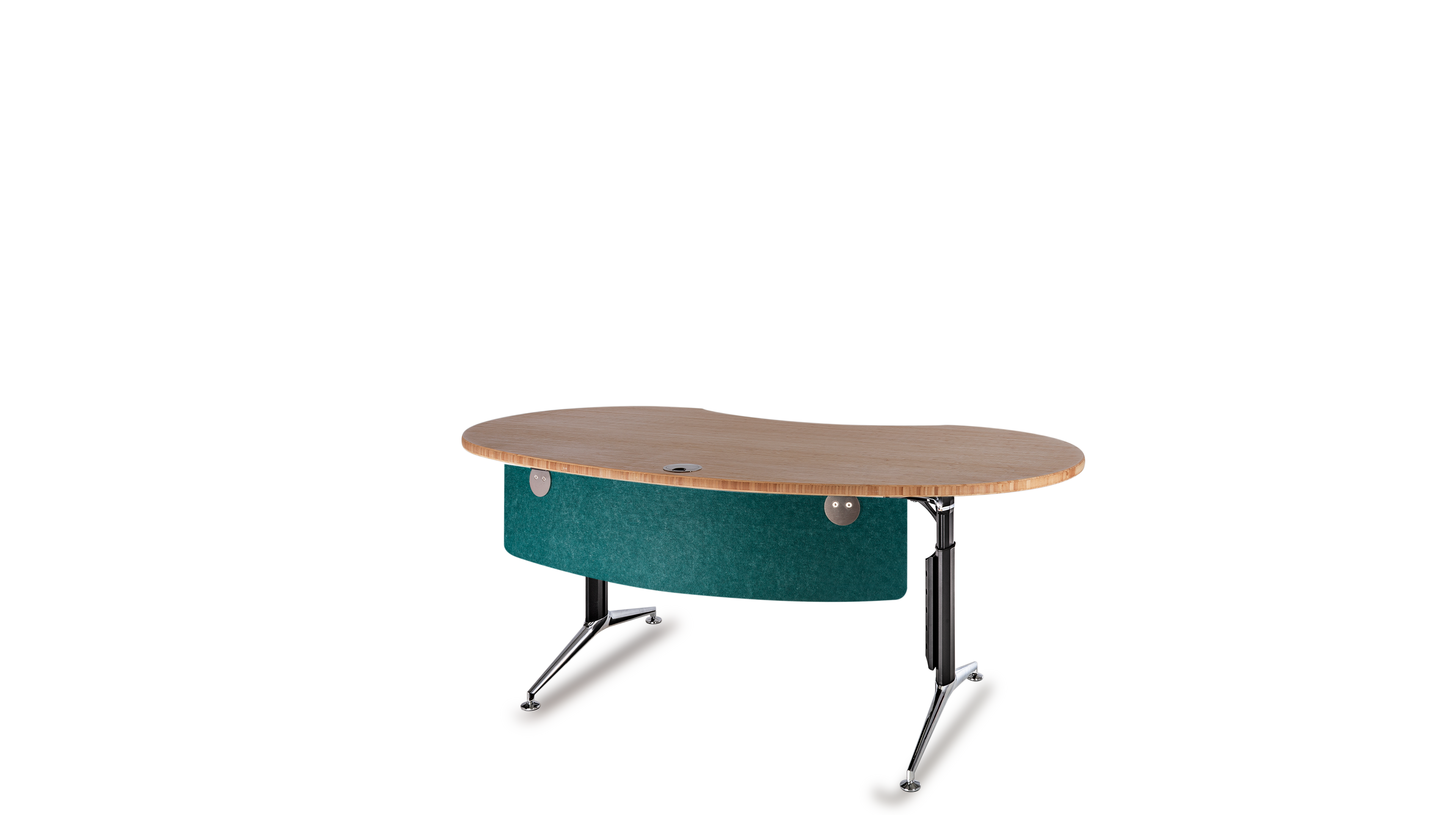 Das Büro ist ein geschäftiger Ort, der eine harmonische Atmosphäre benötigt. Die optimale Gestaltung eines ergonomischen Arbeitsplatzes orientiert sich an den menschlichen Bedürfnissen. Das Gefühl der Sicherheit in Form eines geschützten Privatbereichs ist essentiell für stressfreies Arbeiten und Grundvoraussetzung für ungezwungene freie Kommunikation und Kollaboration. Die Rückendeckung, Abschirmung und Kommando (Übersichts-) Position kann durch Drehen der Tischplatte in beliebigem Winkel optimiert werden. Sie fügen sich soft in ihre Umgebung ein und führen somit zu mehr Bewegung und Kommunikation, während eckige Schreibtische scharf und abgrenzend das Gegenteil bewirken.
