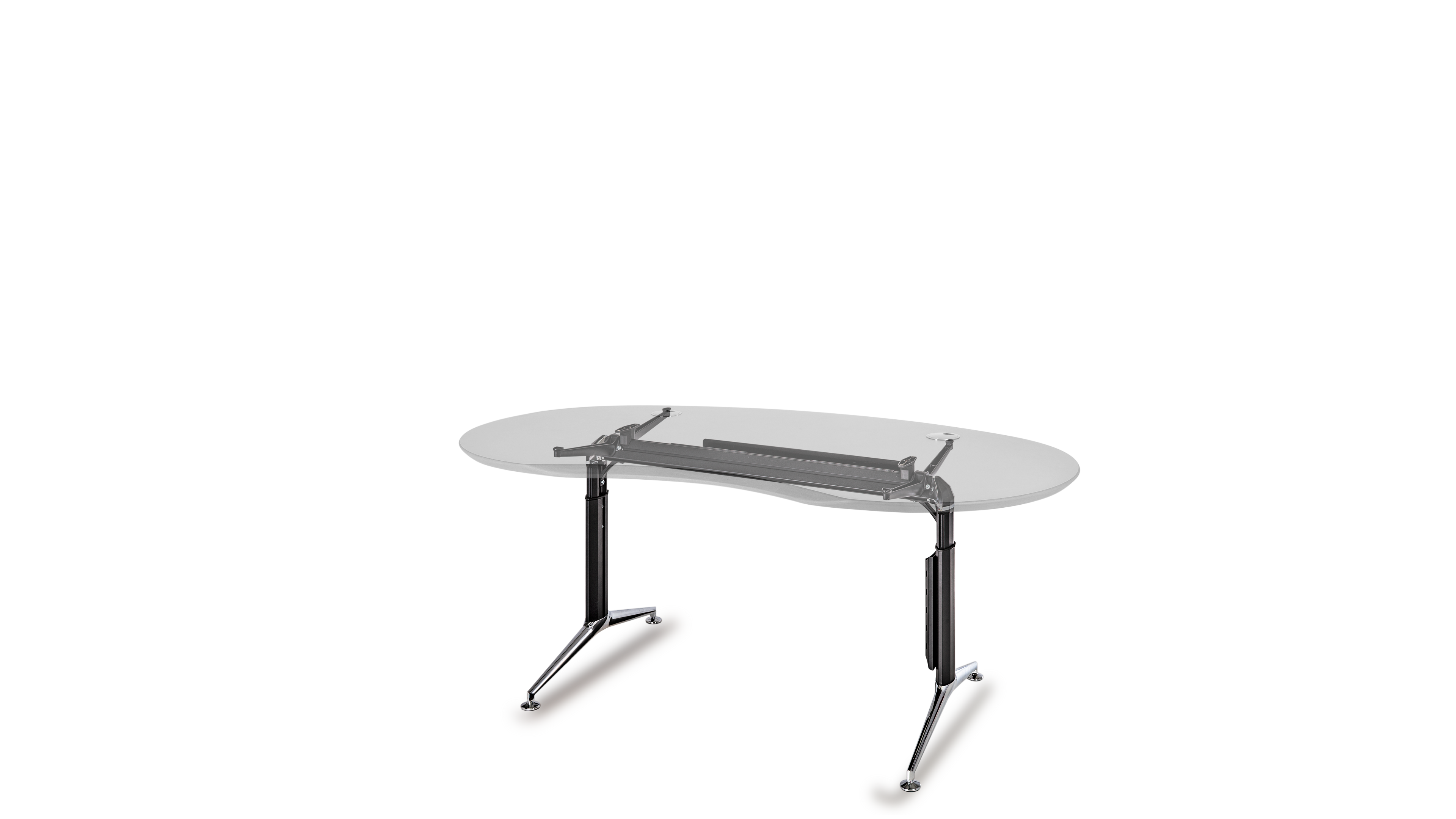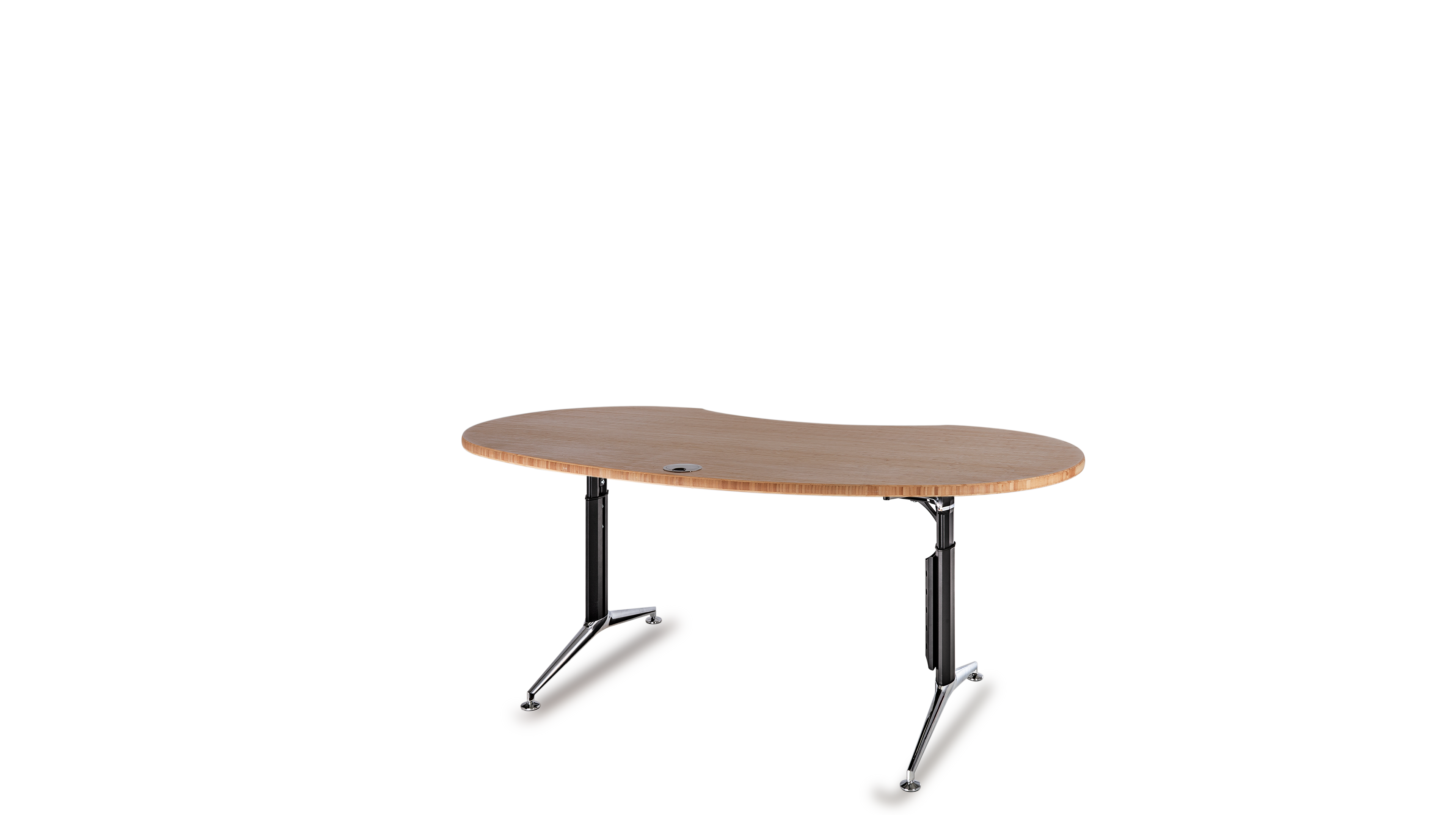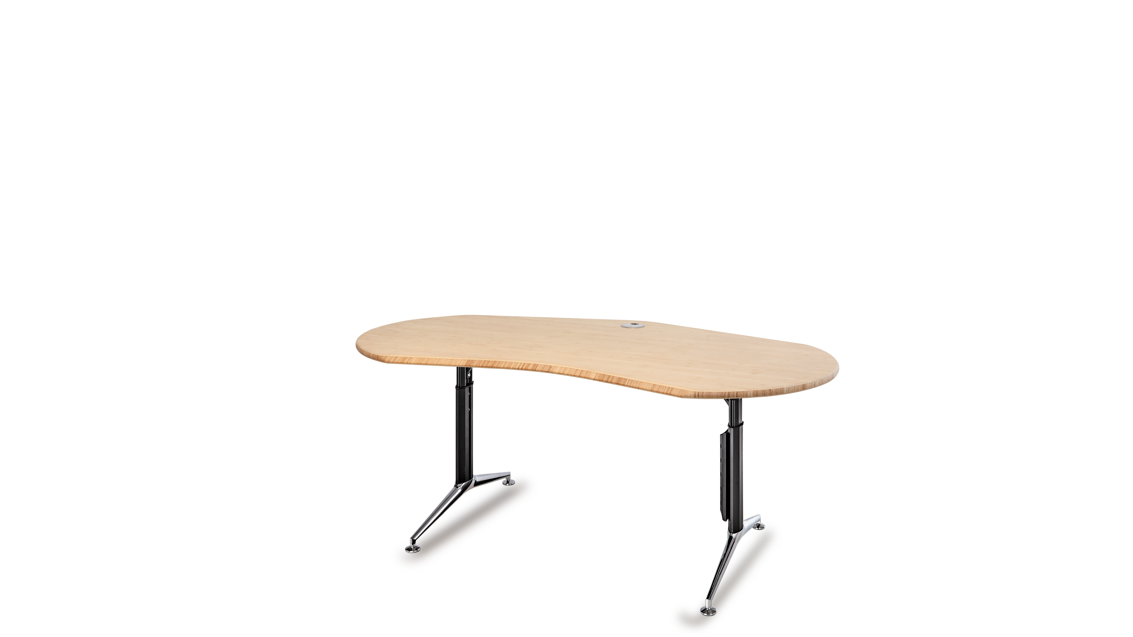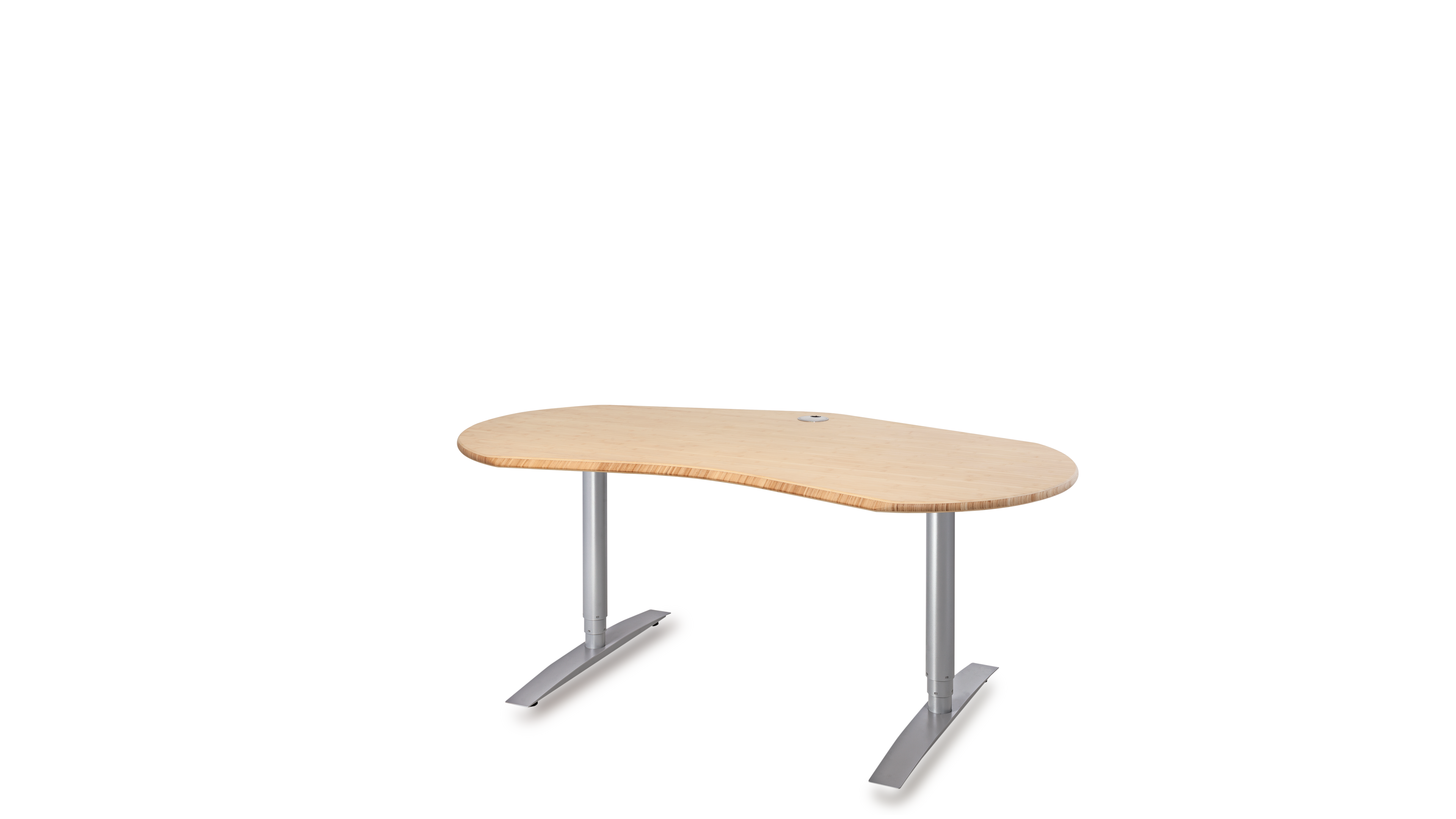 Das Büro ist ein geschäftiger Ort, der eine harmonische Atmosphäre benötigt. Die optimale Gestaltung eines ergonomischen Arbeitsplatzes orientiert sich an den menschlichen Bedürfnissen. Das Gefühl der Sicherheit in Form eines geschützten Privatbereichs ist essentiell für stressfreies Arbeiten und Grundvoraussetzung für ungezwungene freie Kommunikation und Kollaboration. Die Rückendeckung, Abschirmung und Kommando (Übersichts-) Position kann durch Drehen der Tischplatte in beliebigem Winkel optimiert werden. Sie fügen sich soft in ihre Umgebung ein und führen somit zu mehr Bewegung und Kommunikation, während eckige Schreibtische scharf und abgrenzend das Gegenteil bewirken.