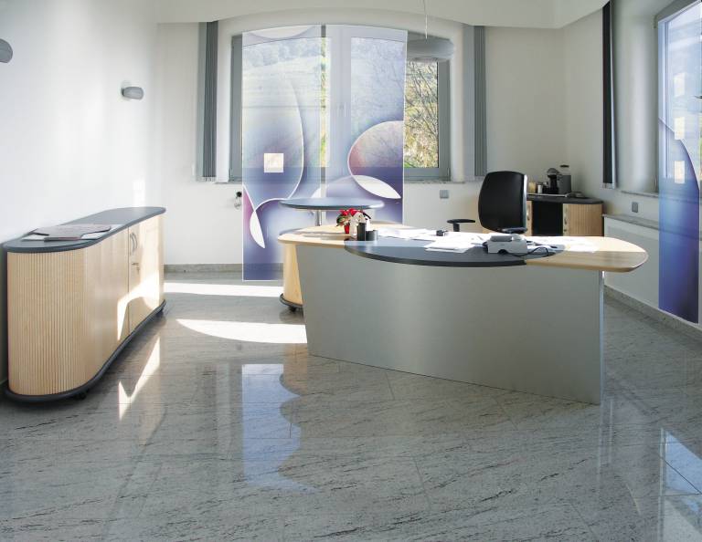 "Vital-Office® acoustic-panel-blinds create friendliness and natural harmony in the office, because the windows are not completely covered by the product. You still can view outside", explains managing directors Peter Jordan. In addition: With Vital-Office® acoustic-panel-blinds the effect of grey and dull sun shutters are gone. Now colors and motifs dominate, which can be arranged individually, for example with a company logo. "Vital-Office® acoustic-panel-blinds" are characterized by a special grid, which combines color and images with transparency - upwards it becomes more transparent, so that you can have a look through.