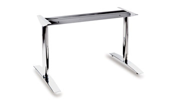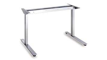 Formschönes hochwertiges Aluminium T-Fussgestell mit integrierter Kabelwanne und vertikaler Kabelführung. Einfache Höheneinstellung durch teleskopierbare Aluminiumprofile.