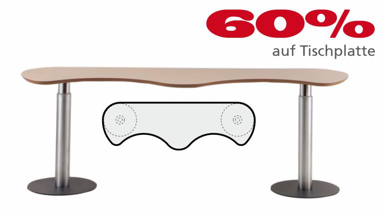 Das Abrunden der Tischplatten ermöglicht eine völlig freie Platzierung der Arbeitsplätze, die sich auch schwierigen räumlichen Gegebenheiten anpasst. Es führt zu: Gewinn von Flächeneffizienz, Stressreduzierung durch optimierte Privatsphäre, Große Flexibilität in der Anordnung der Tische und Gestaltung von Arbeitsgruppen, Enorme Planungsvielfalt und Reserve für spätere Arbeitsplatzerweiterungen. Ein langlebiges Konzept, optimiert für Umstrukturierungen, Umbauten und Umzüge in andere Räume. Ein weiteres positives Gestaltungsmerkmal hinsichtlich ästhetischer Raumgestaltung ist die unterschiedlich optische Wirkung (Täuschung):Bei gleicher Größe werden runde Formen kleiner wahrgenommen als Eckige.