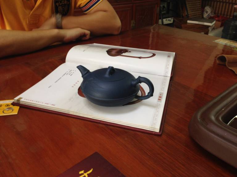 Unfortunately no one has an internet page, nor an email. So we talked how we can get in contact with them in case some of our friends want to buy and we got some phone and qq numbers, were Vincent or my son (who also speaks Chinese) can get in contact with them. I really can recommend either the cheaper no famous name teapots as well as the valuable teapots made by Gu Meipeng. See the pictures. I especially like the blu teapot. No need to say, that exactly this is the more expensive one, because blue clay is rare.