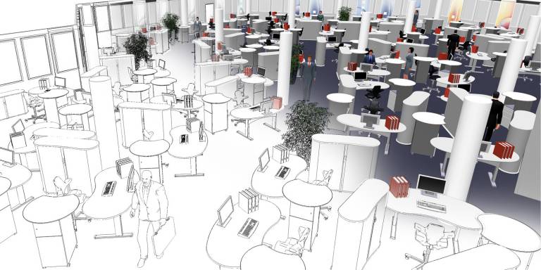 Instead of presenting a finished “To Do List”, we direct our attention to the basic principles and contexts. This facilitates the generation of additional possibilities by means of integral individual office planning. Creative ideas and concepts of interior designers and architects and their effect on the health and capability of the individual and the entire team can be analyzed in advance using the Vital-Office® Concept.