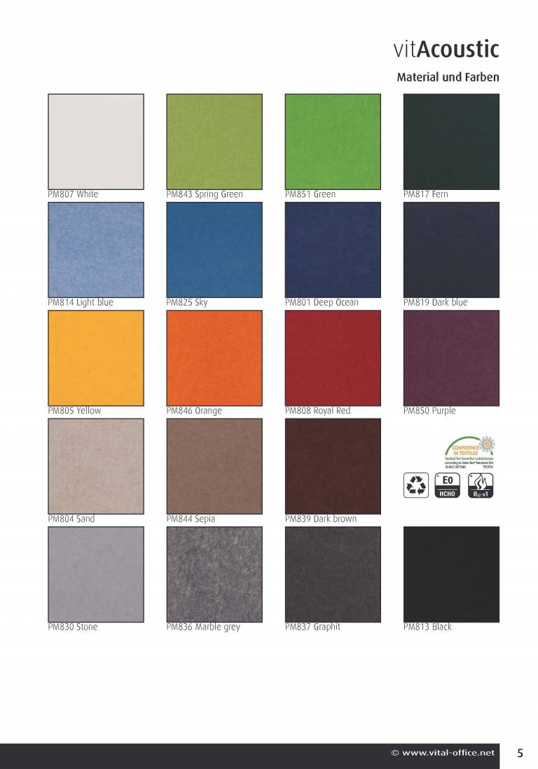 With Vital Office Acoustics PET`s we would like to present you a very efficient, lively, color and shapely product, which is unique in its kind and meets many different requirements or even existing problems (solves).
