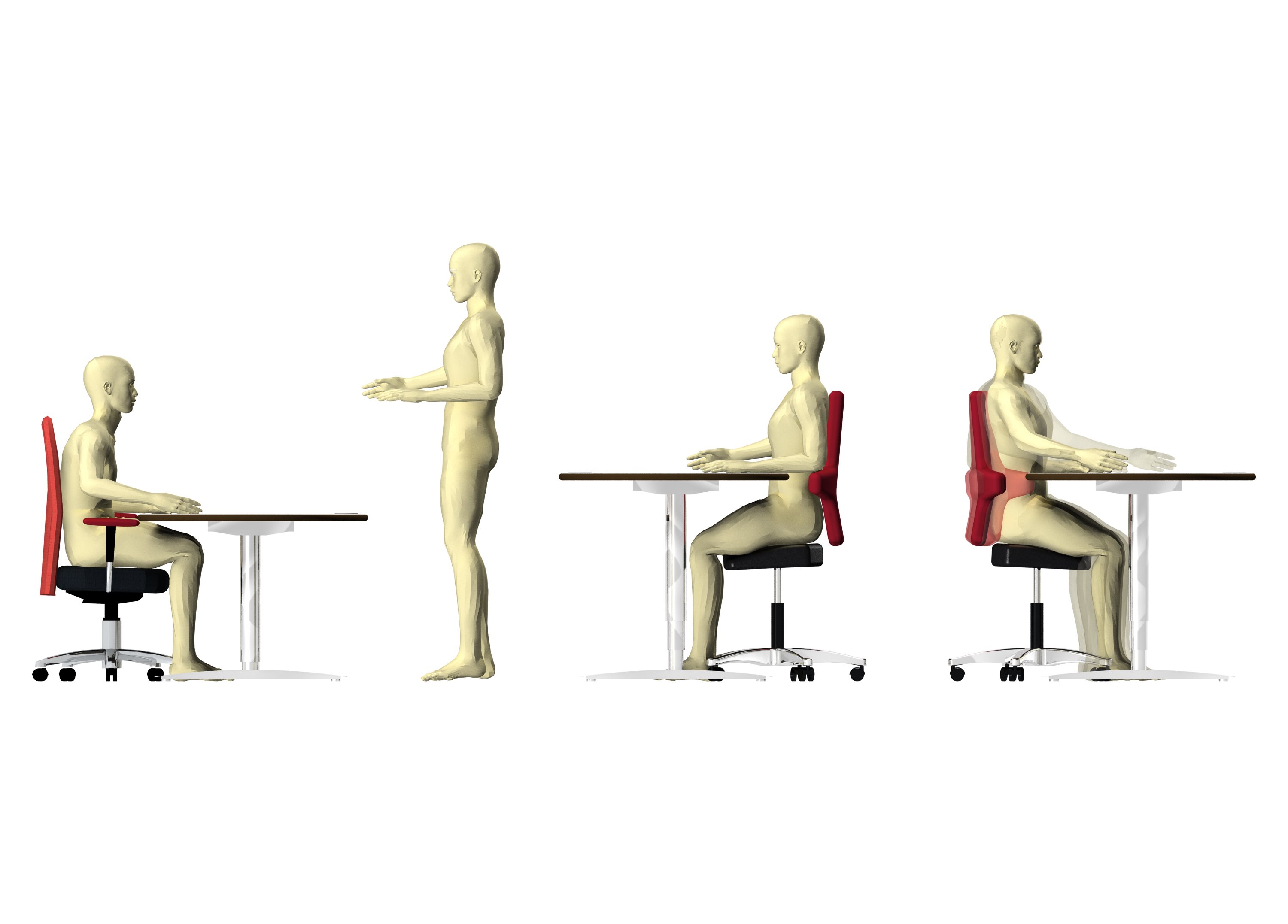 Optimal is, if desk and chair fit together, supporting the ergonomically healthy sitting positions and do not affect the dynamic working.