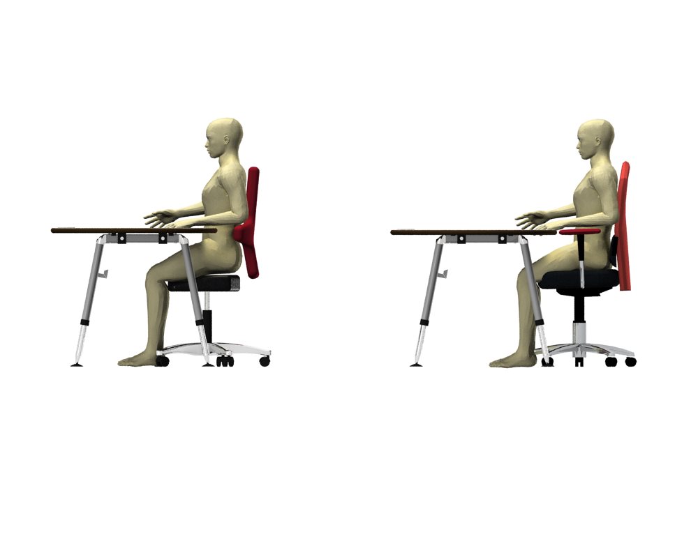 Optimal is, if desk and chair fit together, supporting the ergonomically healthy sitting positions and do not affect the dynamic working.