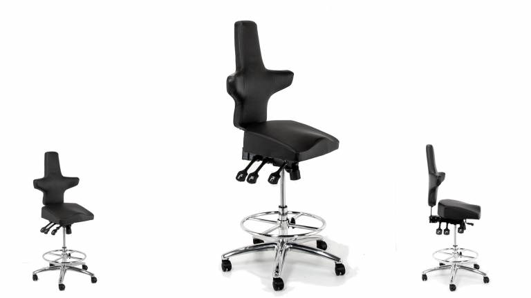 - Sattelsitz geformte Sitzfläche und höhere Gasfeder für gesundes Hoch-Sitzen mit offenen Hüftwinkel