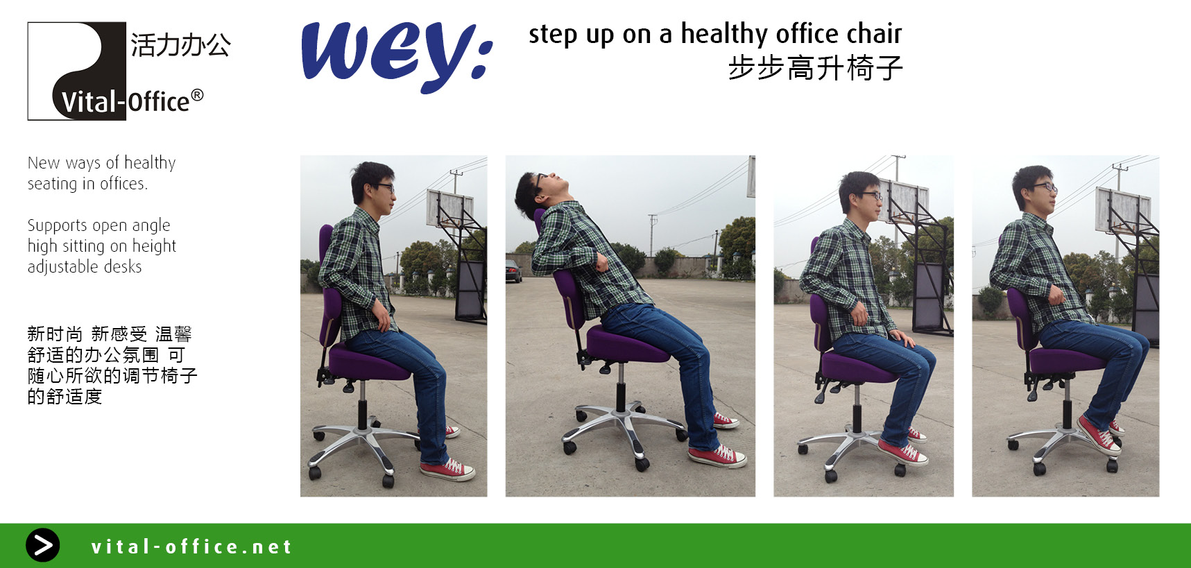 - Wenn Sie nun mit obigen Funktionen vertraut sind und Ihren Stuhl passend eingestellt haben, können Sie das dynamische kreislauffördernde Sitzen versuchen.