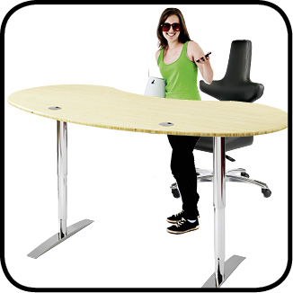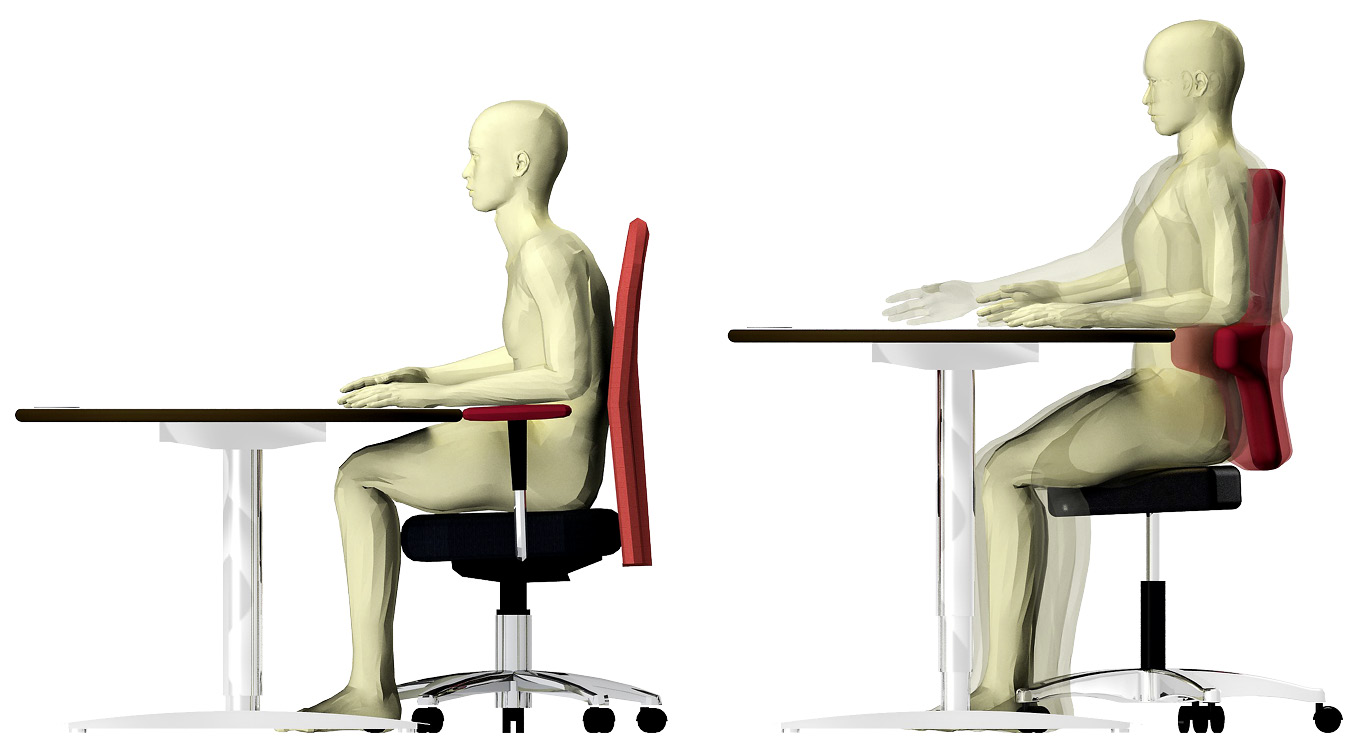Optimal ist, wenn Tisch und Stuhl zusammen passen, die ergonomisch gesunde Sitzposition gemeinsam unterstützen und das dynamische Arbeiten nicht beeinträchtigen.