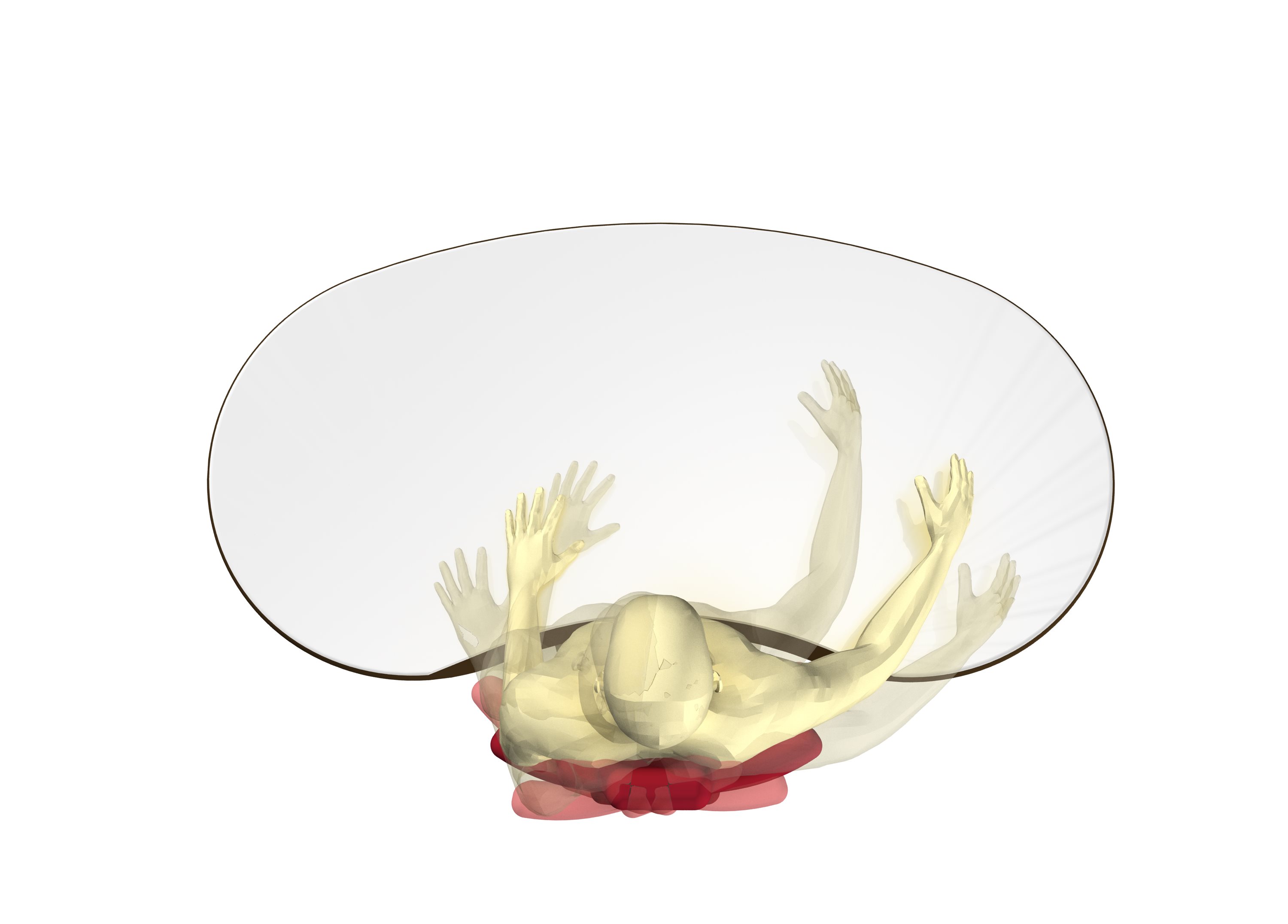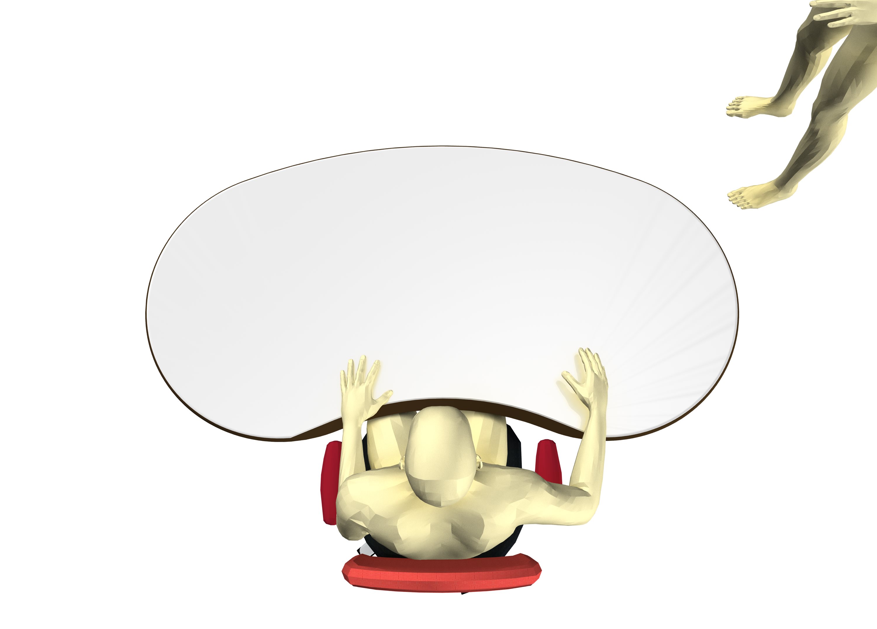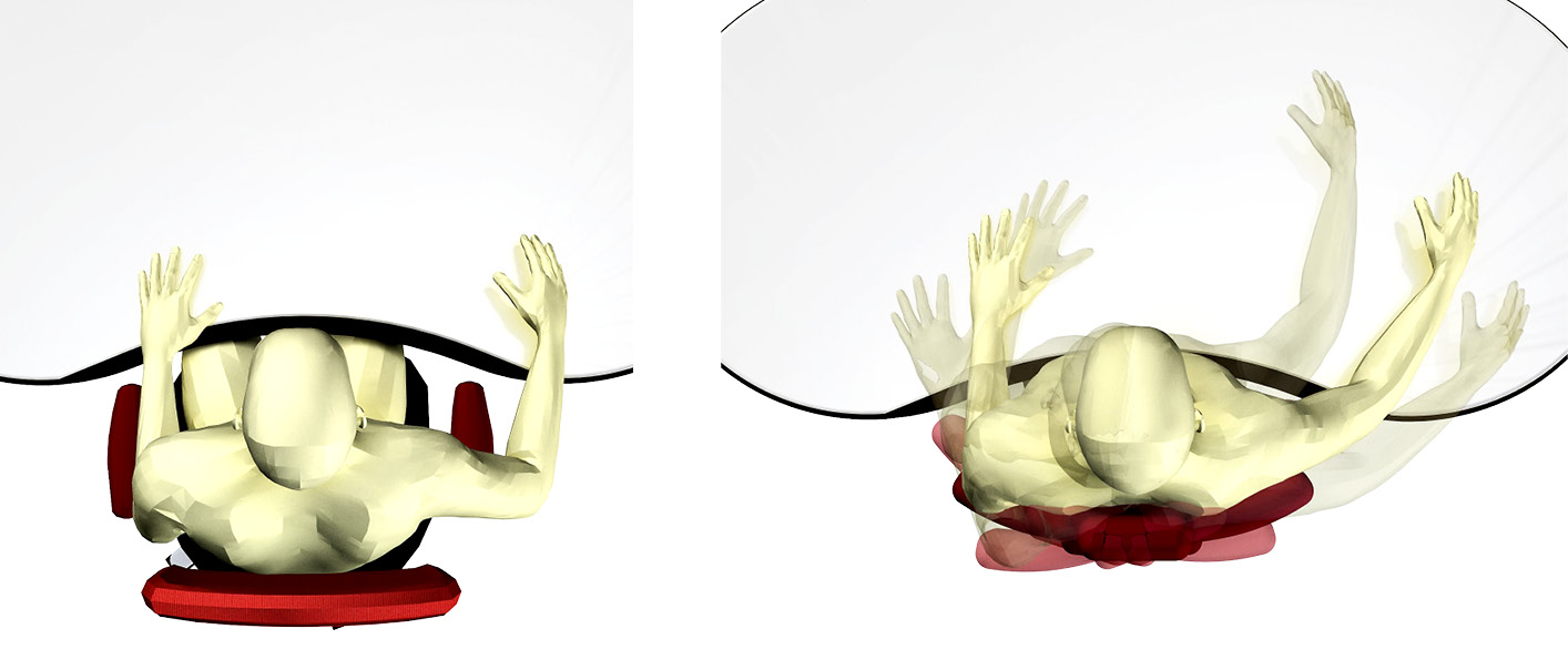 Armlehnen sollten vorzugsweise zurück schwenkbar oder für die runde anthropometrische Tischform als Ellbogenauflage konzipiert sein. Dies ermöglicht Ihnen, sich frei zu drehen und die vergrößerte Tischfläche, die sich um Sie herum formt, vollständig zu erreichen.