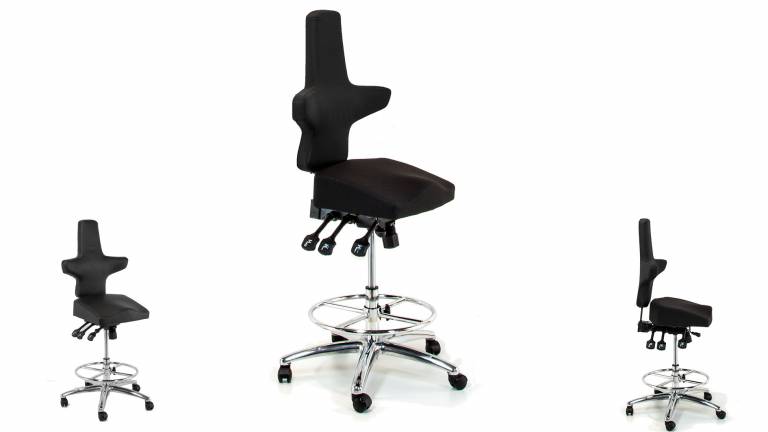 - Sattelsitz geformte Sitzfläche und höhere Gasfeder für gesundes Hoch-Sitzen mit offenen Hüftwinkel