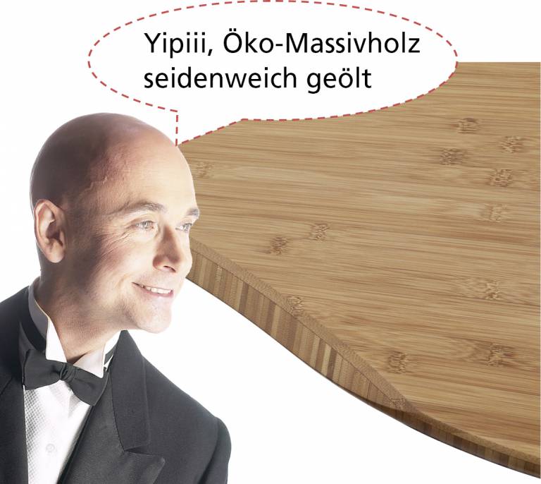 Usually you will learn very spontaneously, what kind of work quality and productivity in this office can be achieved and which are not. The advantage of a desktop in bamboo solid wood is in the sustainability and value, combined with an affordable price. The advantage for the entrepreneur is improved quality of work, mindfulness, and attractiveness. The advantage for the employee is appreciation and "feel good".